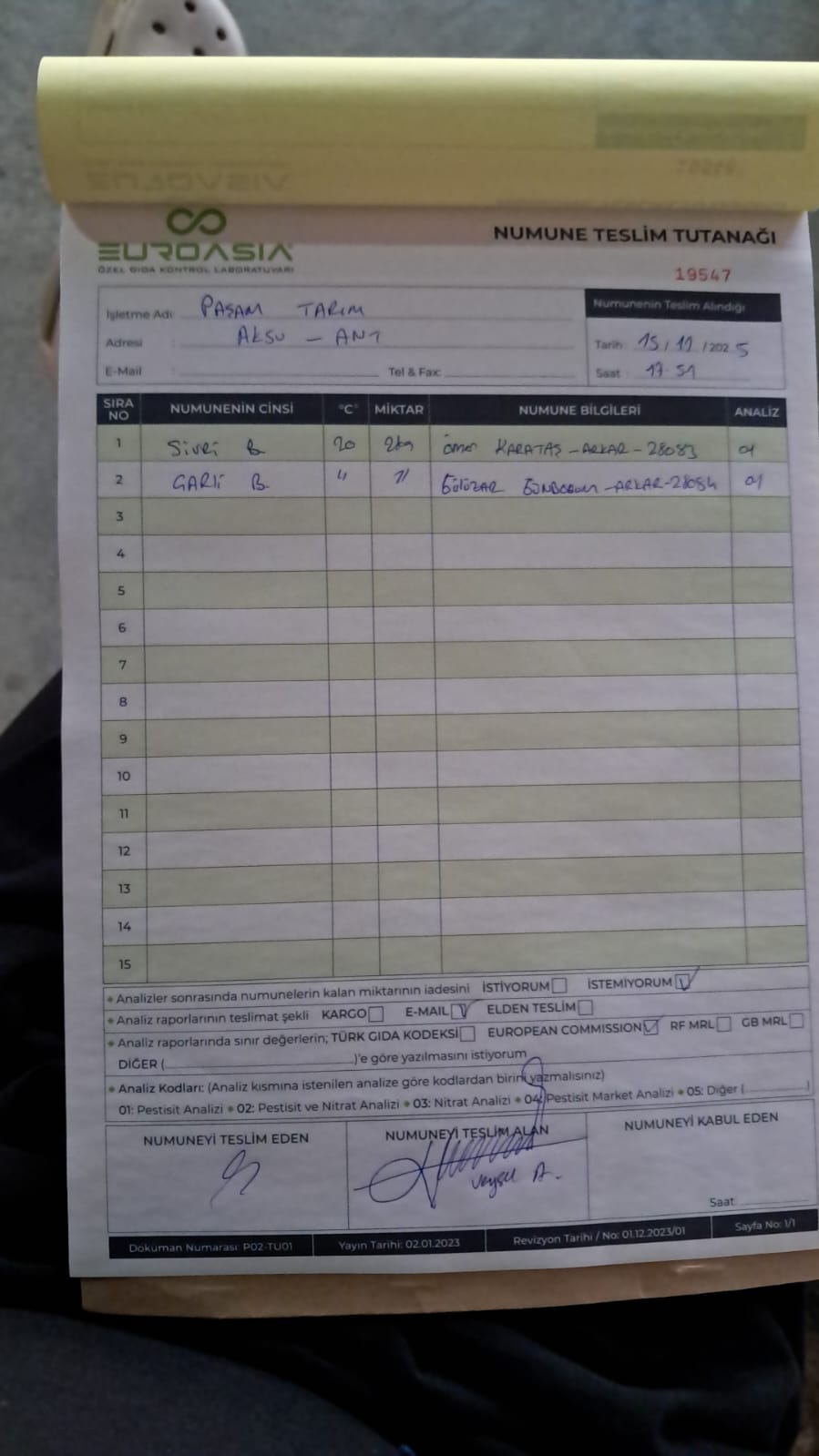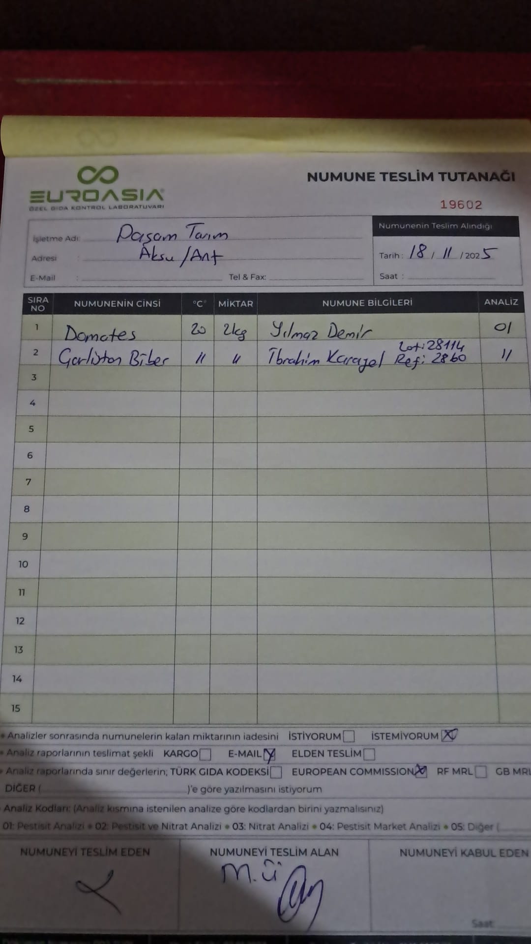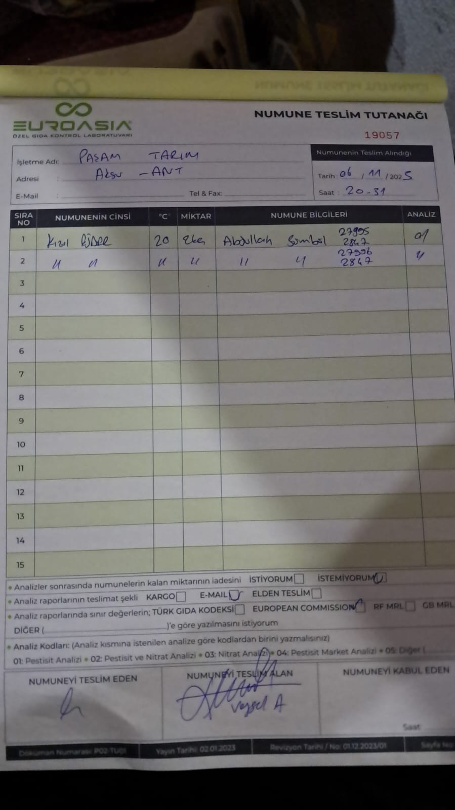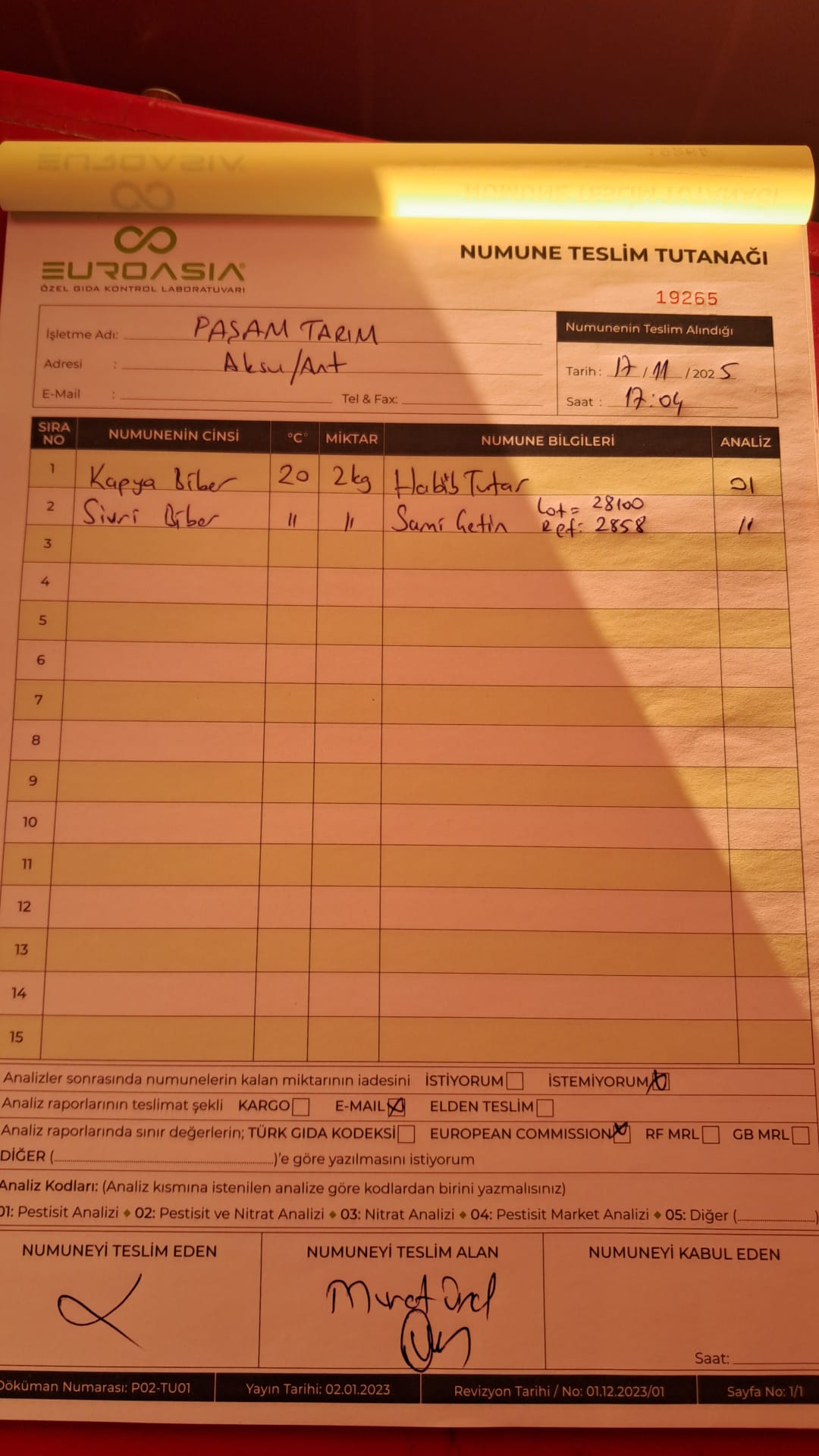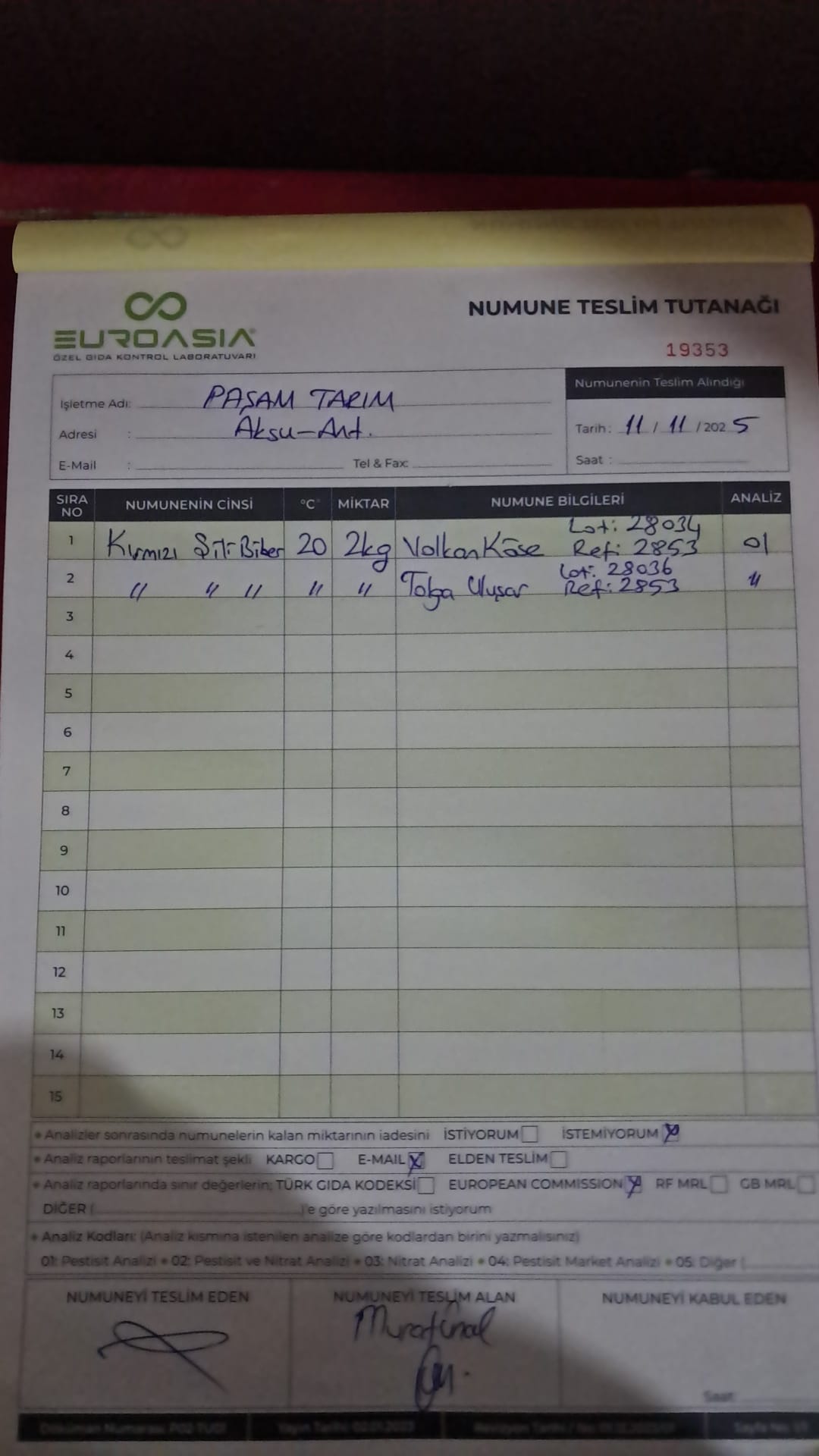 2 adet numune teslim alındı | 05.11.2025 16:15 | ||