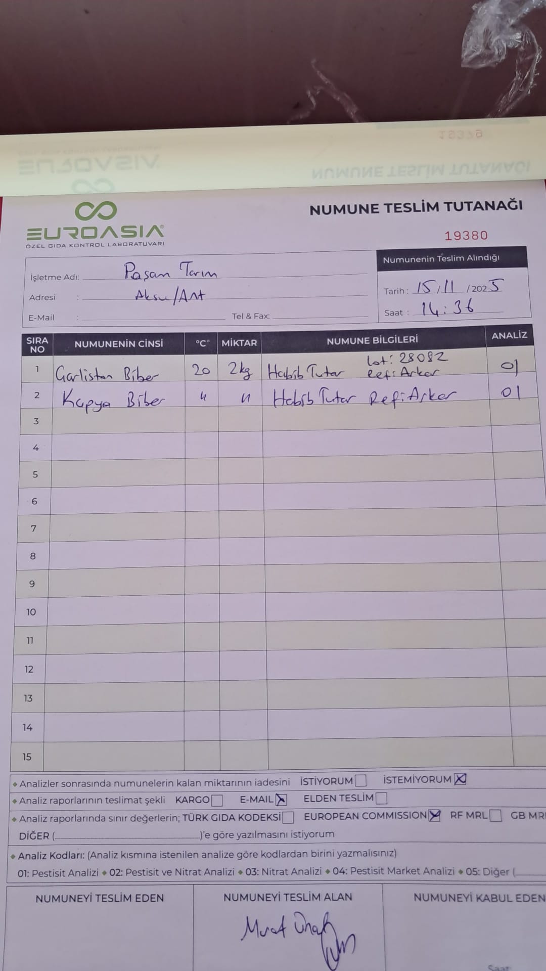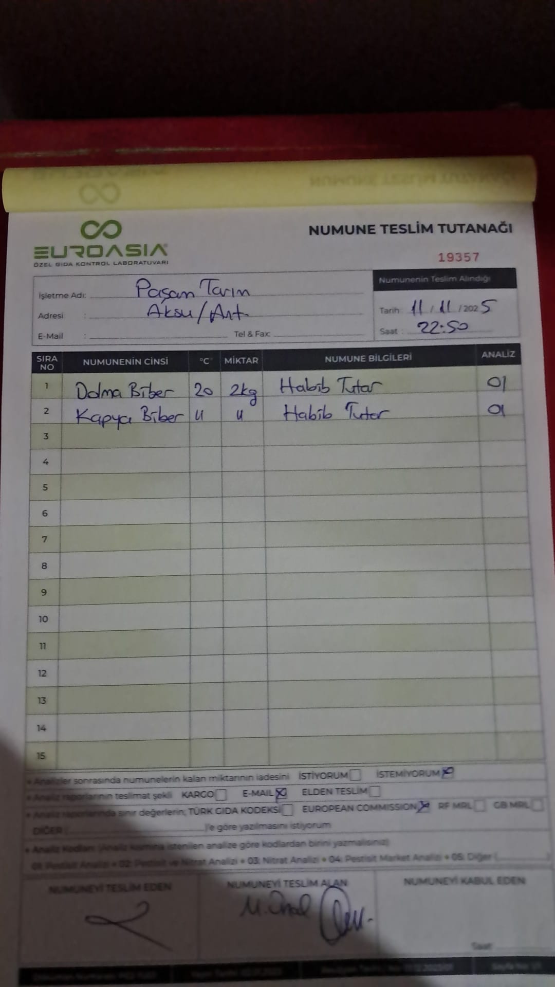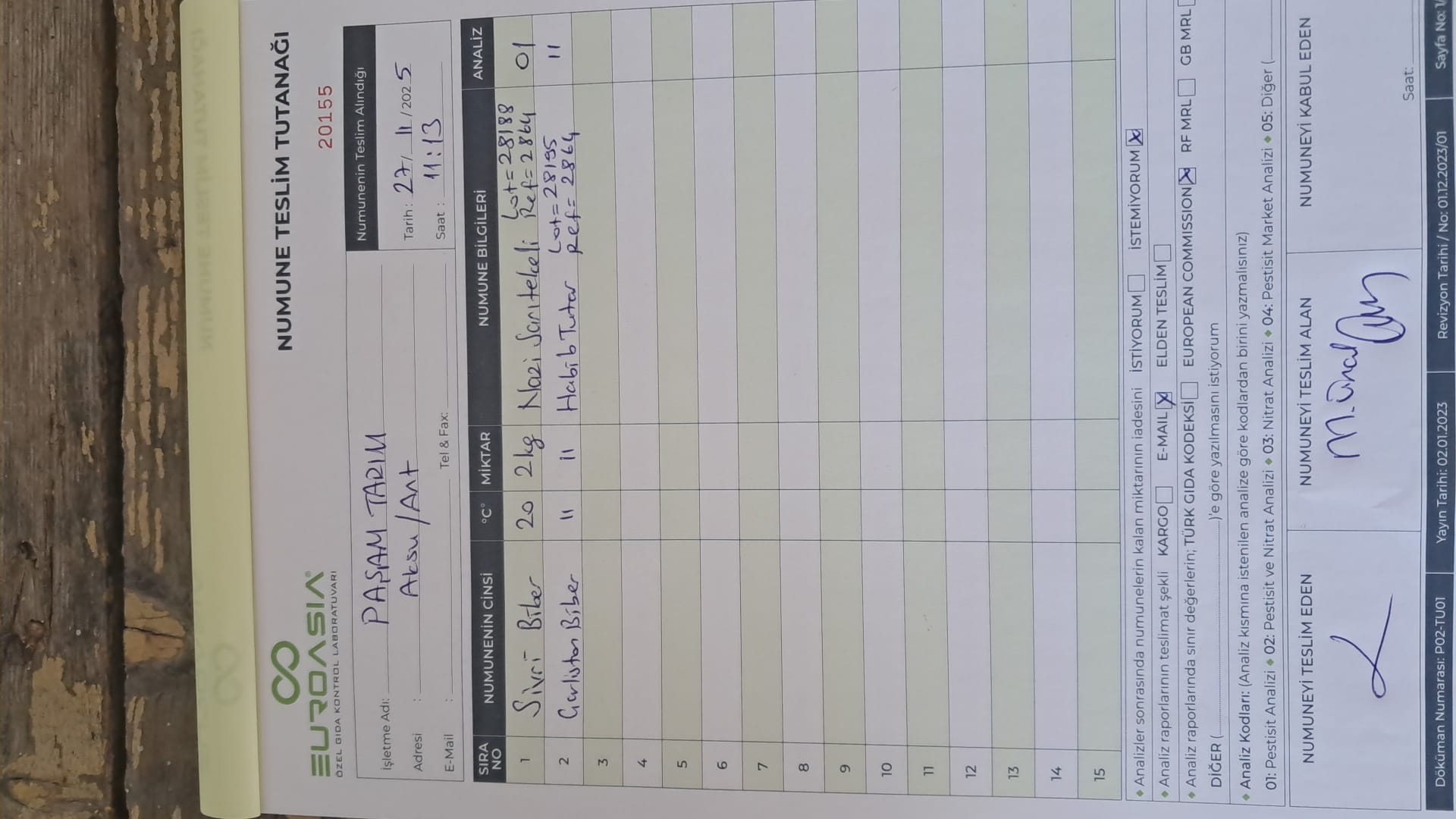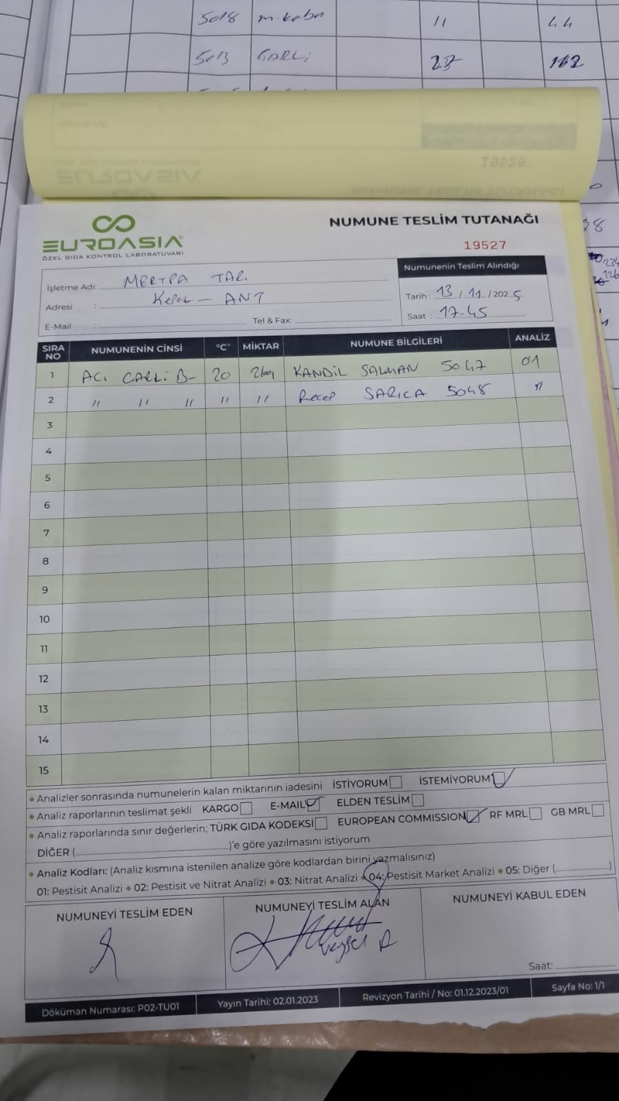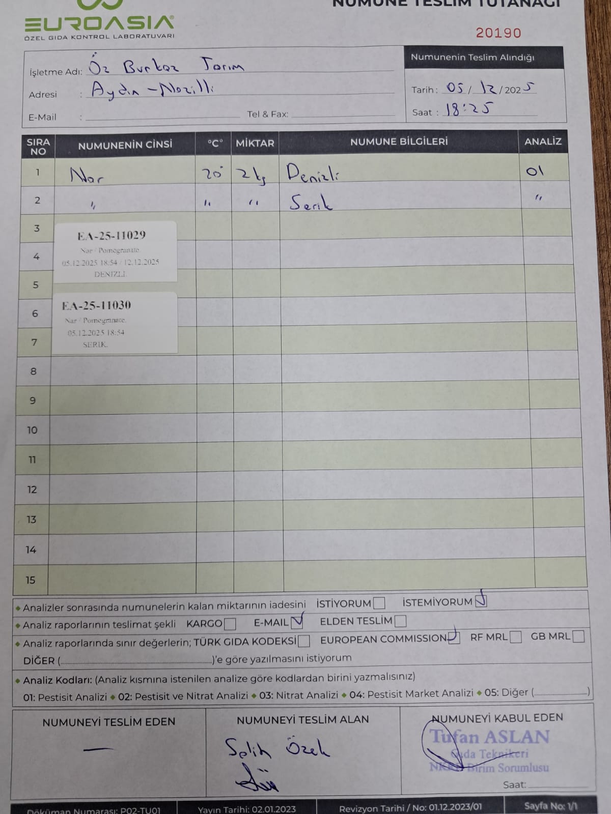 2 adet numune teslim alındı | 05.11.2025 16:15 | ||