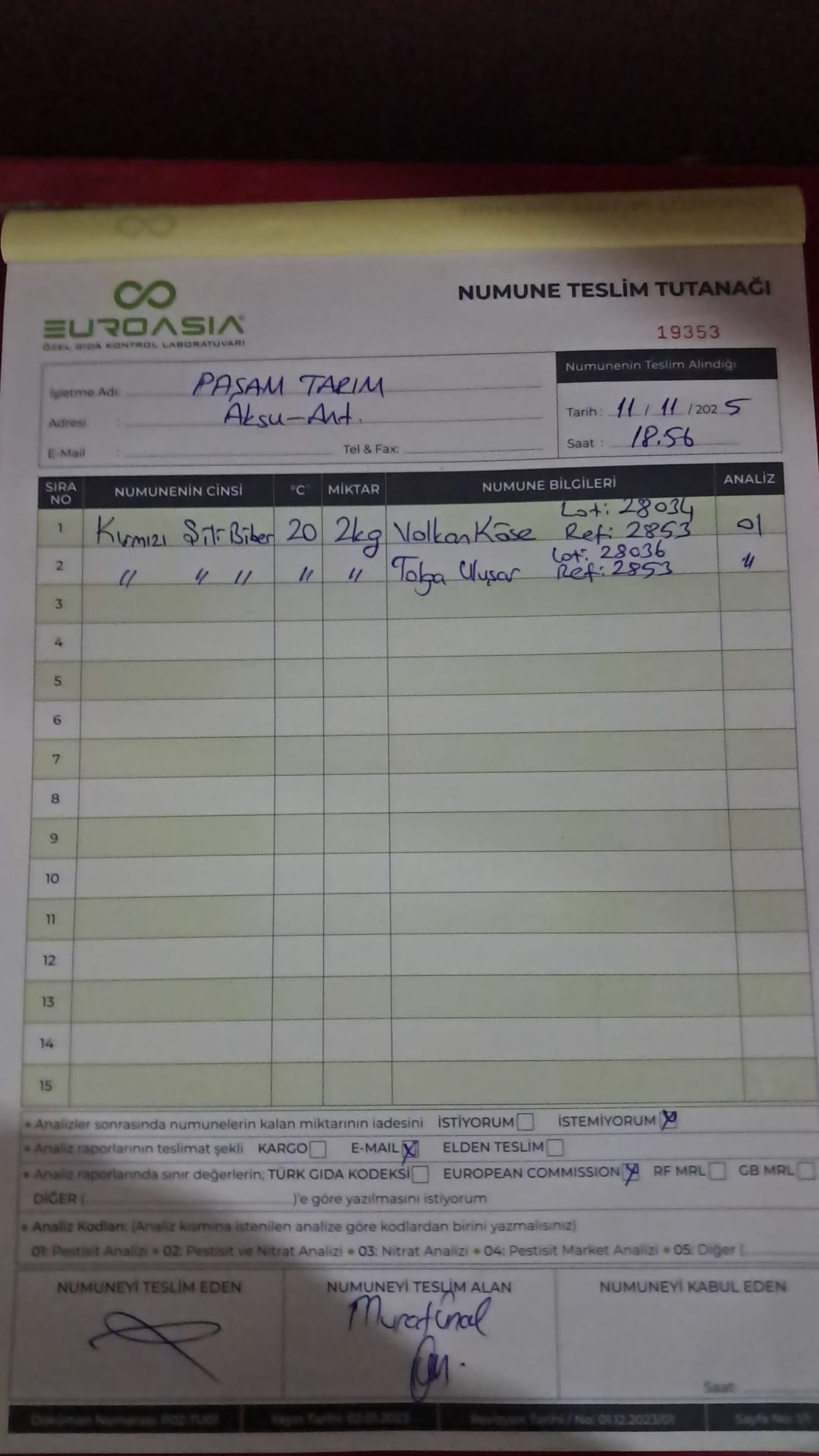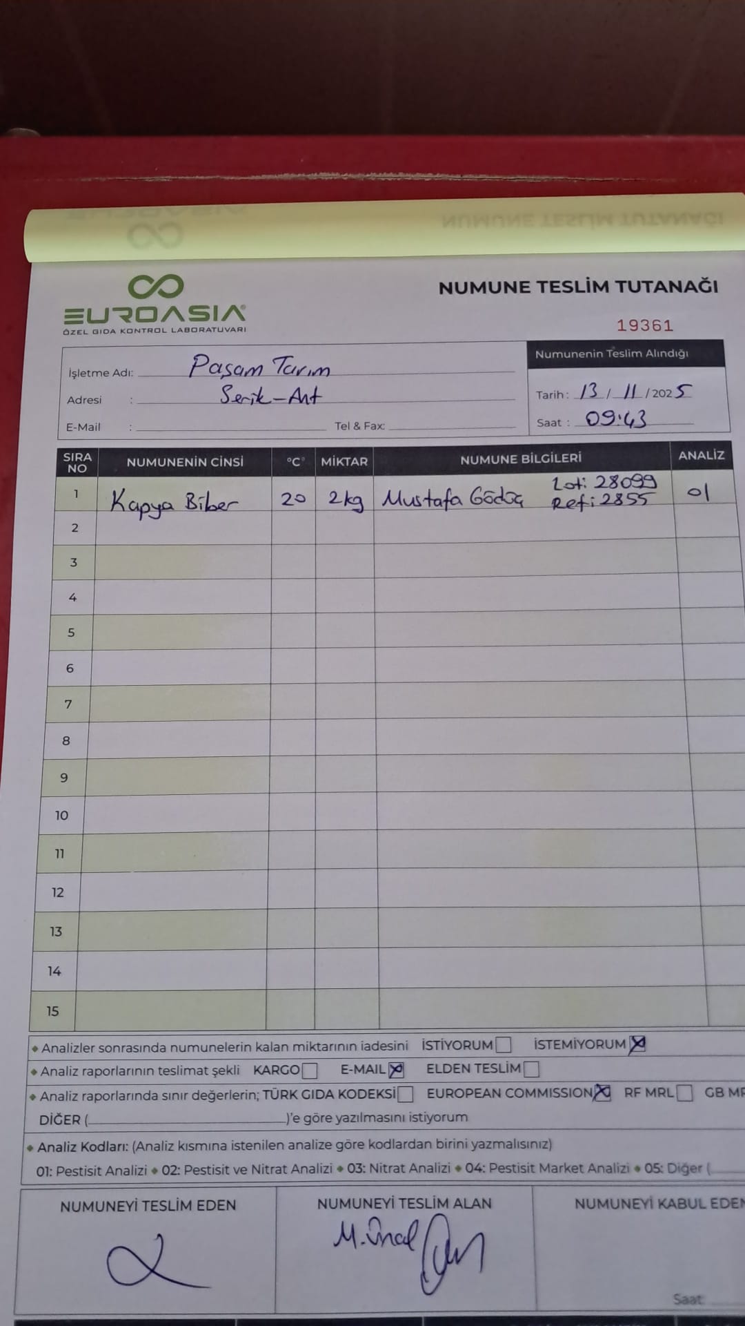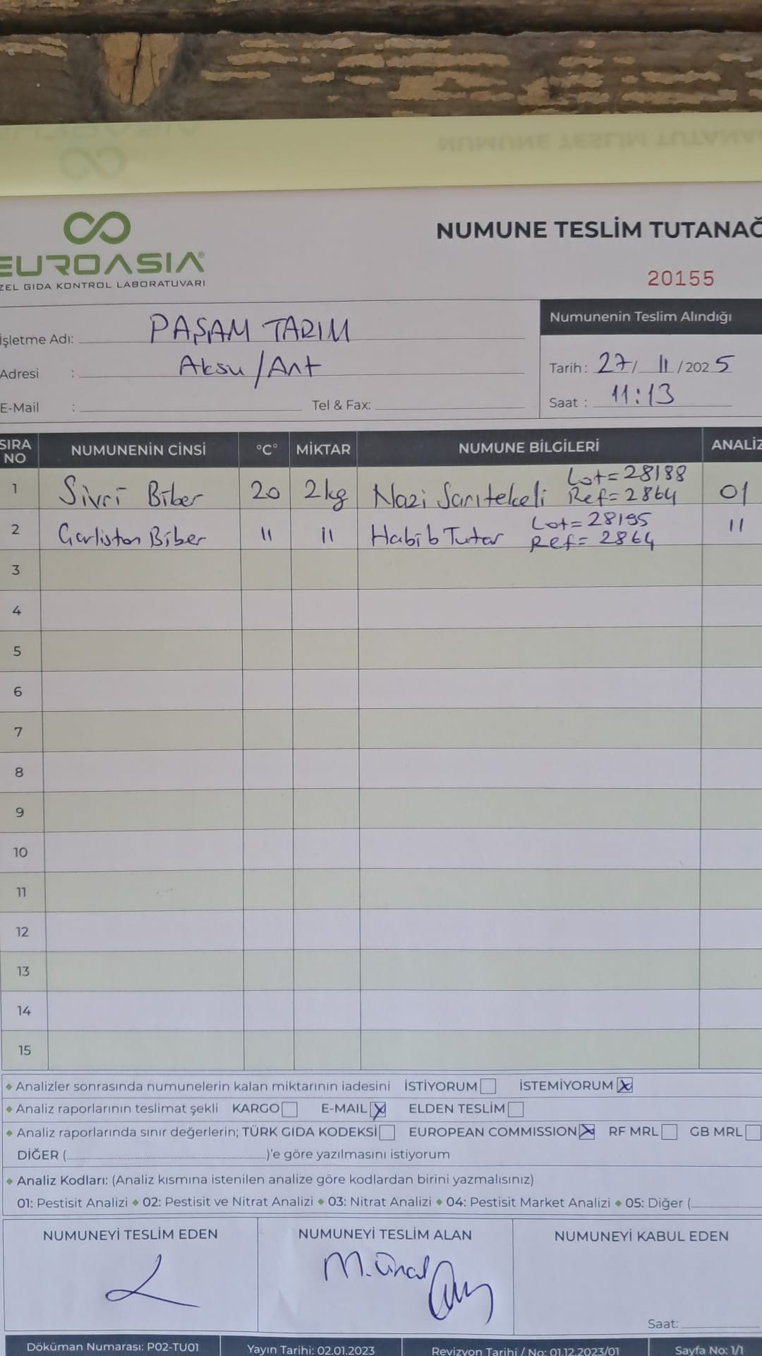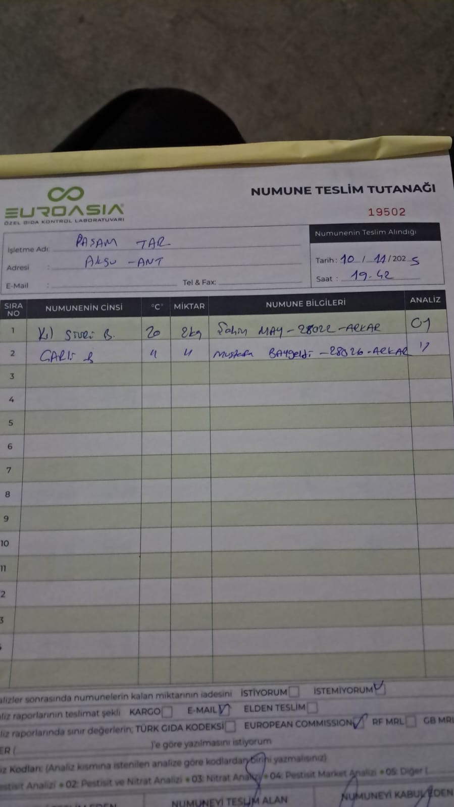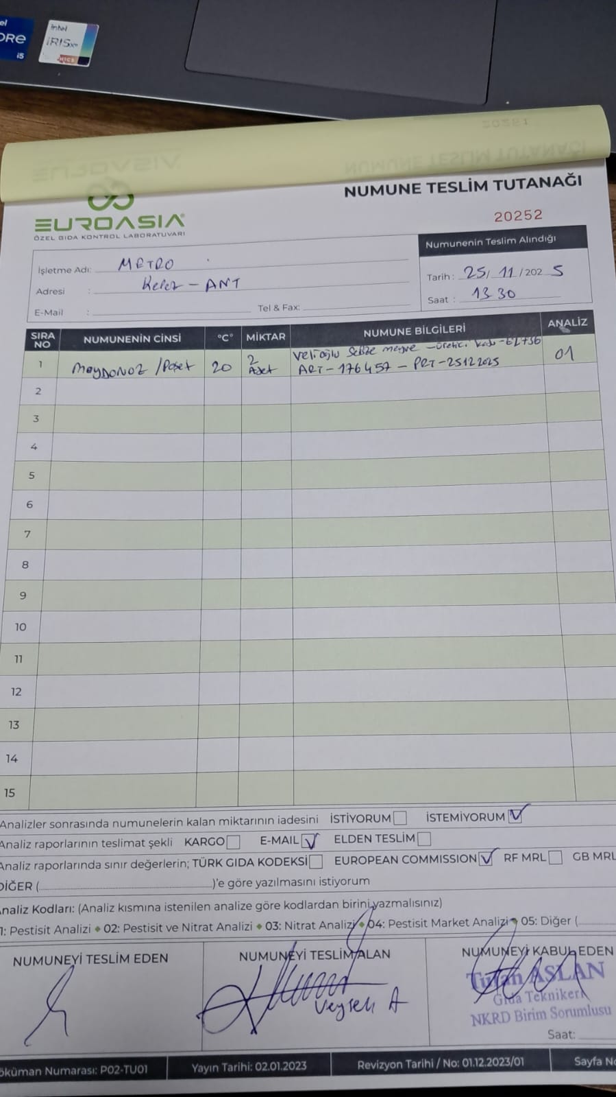 2 adet numune teslim alındı | 05.11.2025 16:15 | ||
