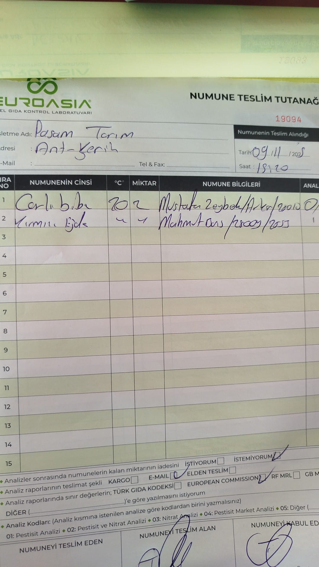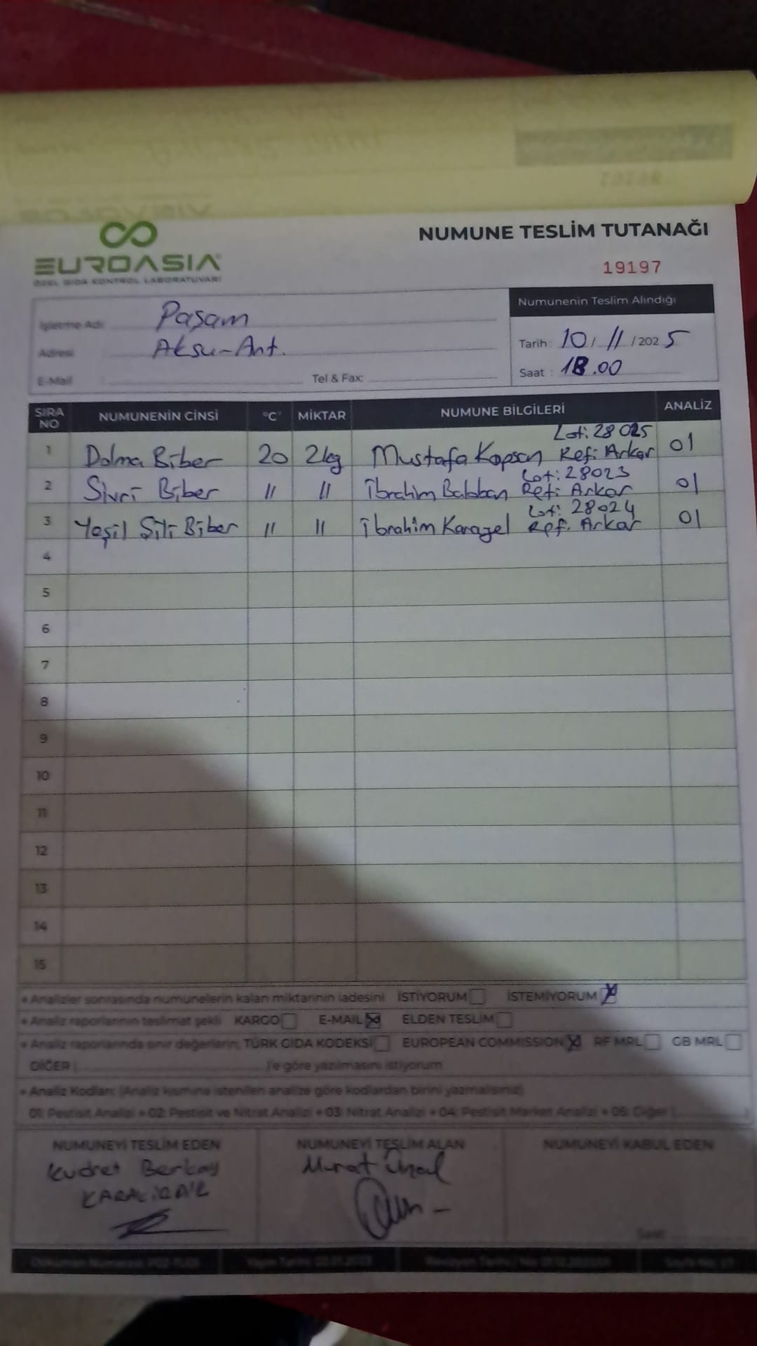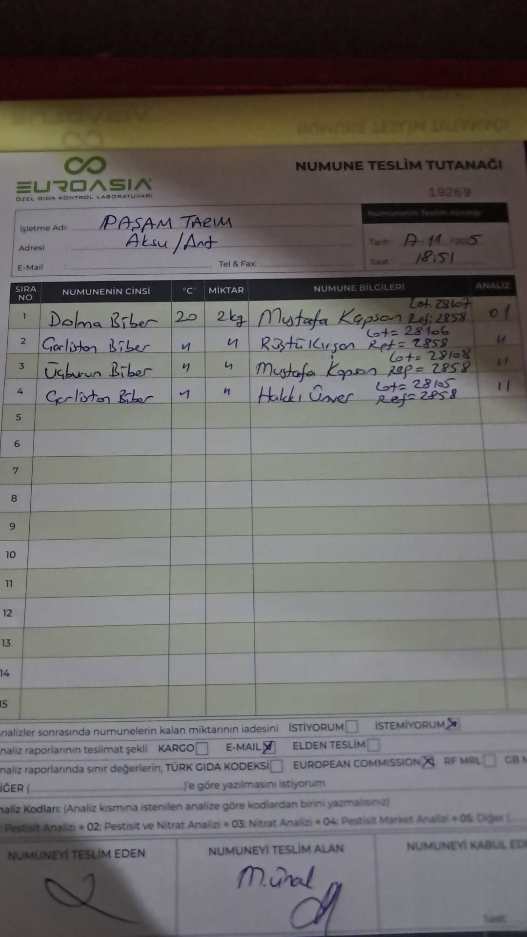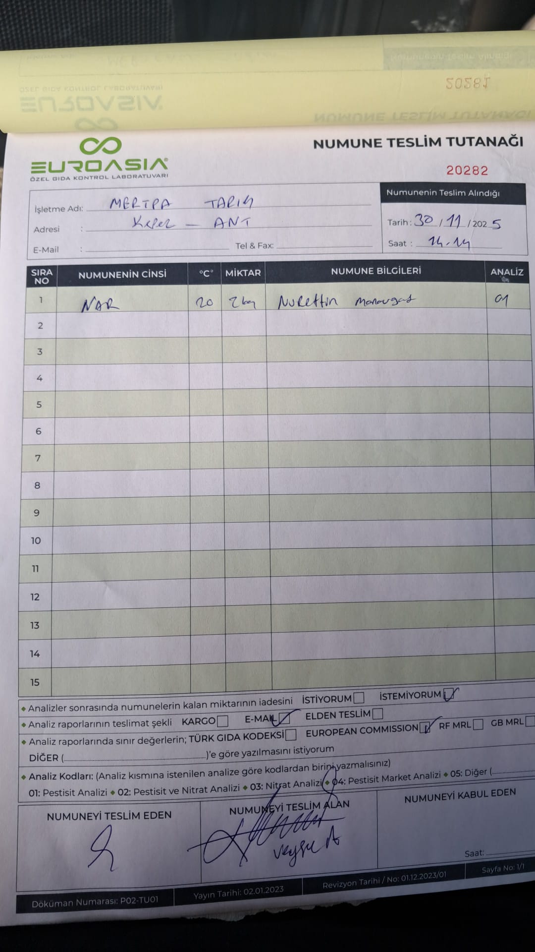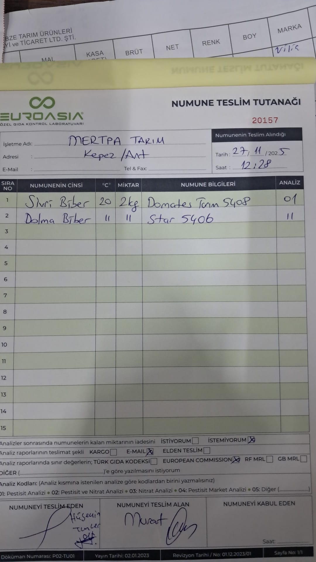 2 adet numune teslim alındı | 05.11.2025 16:15 | ||