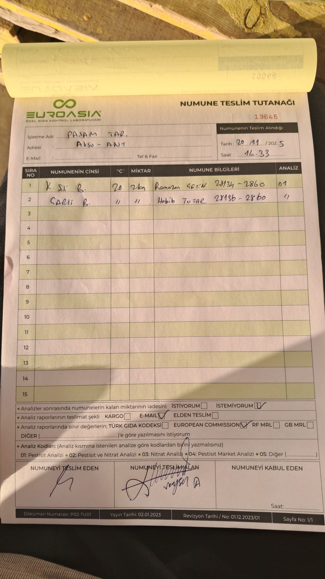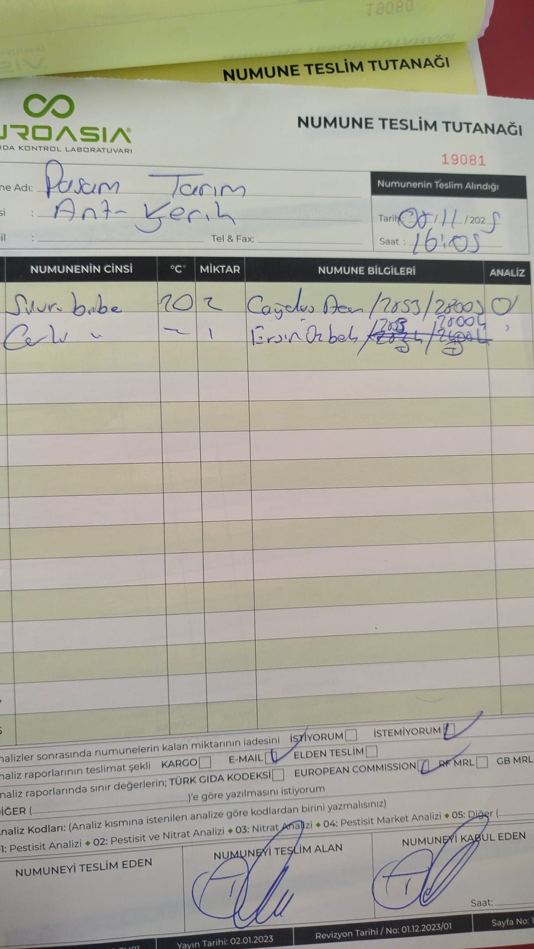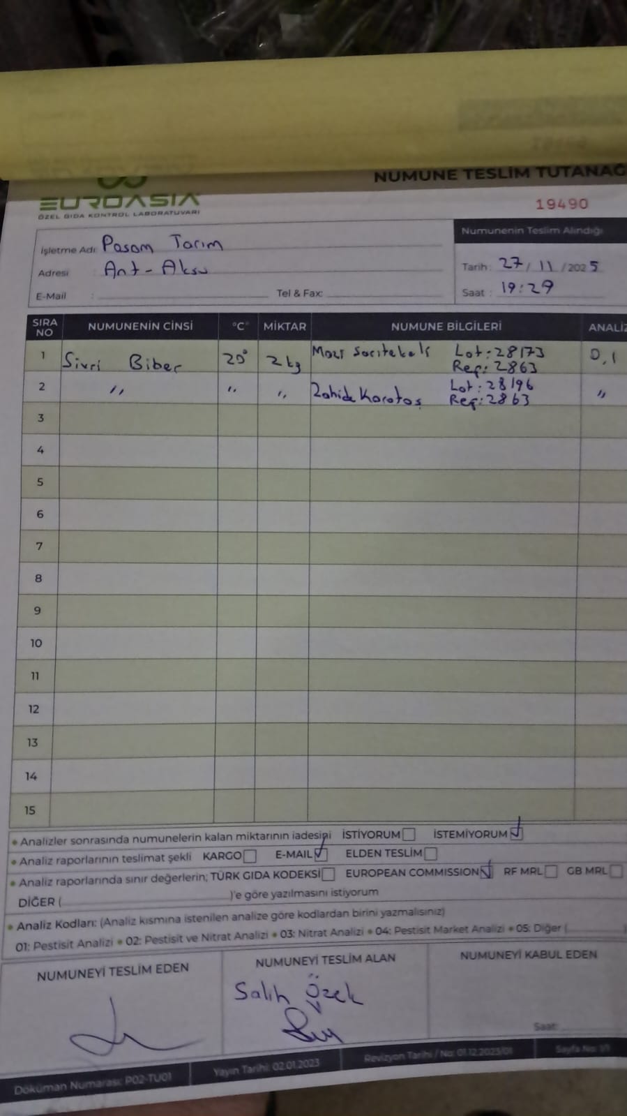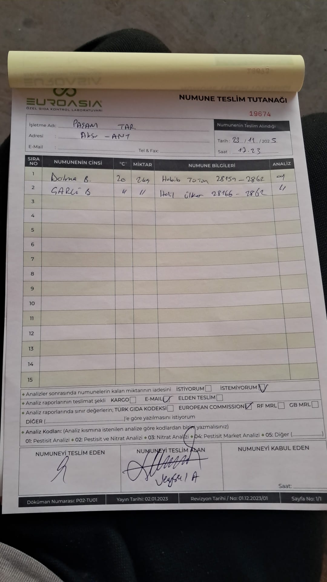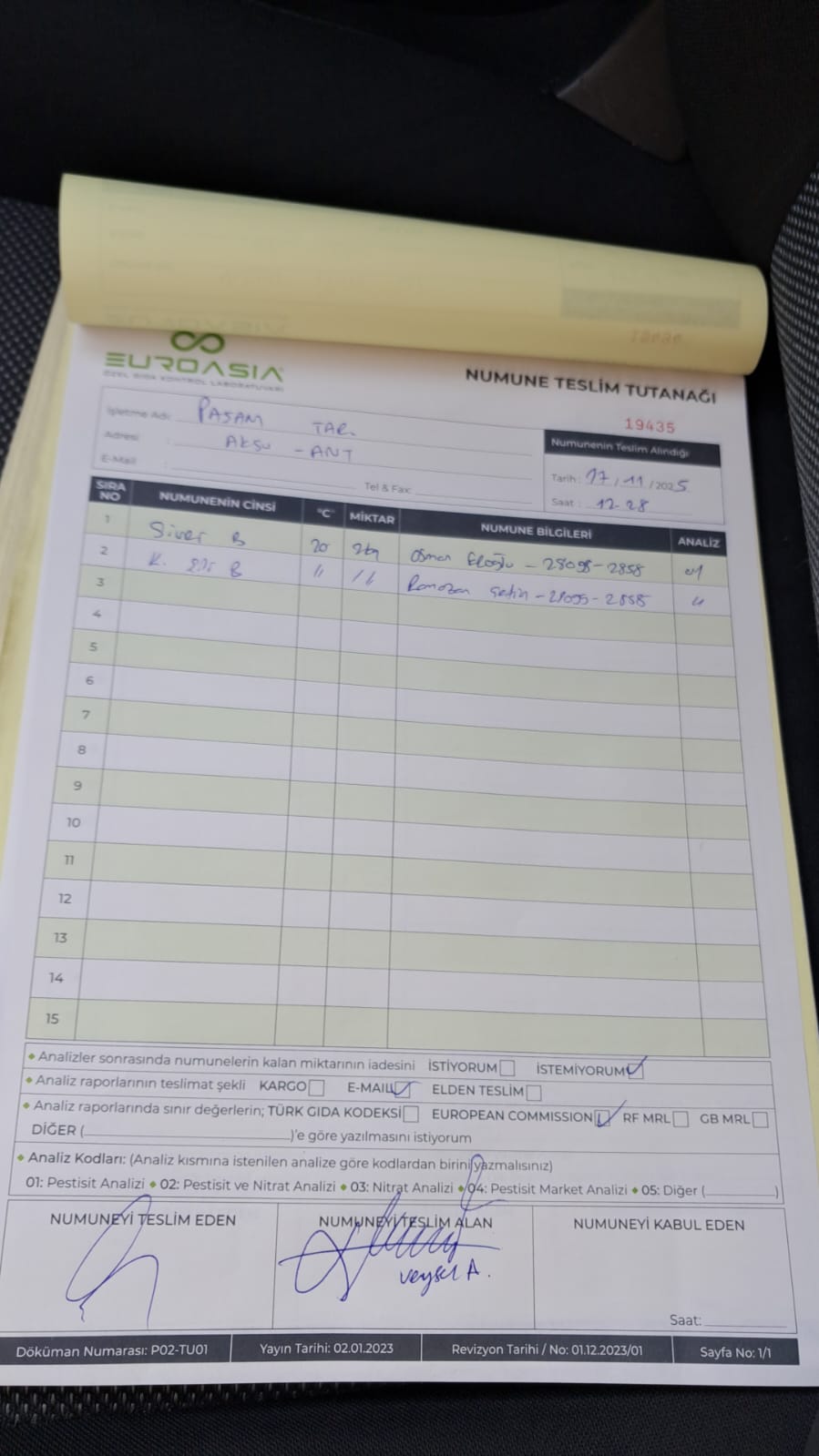 2 adet numune teslim alındı | 05.11.2025 16:15 | ||