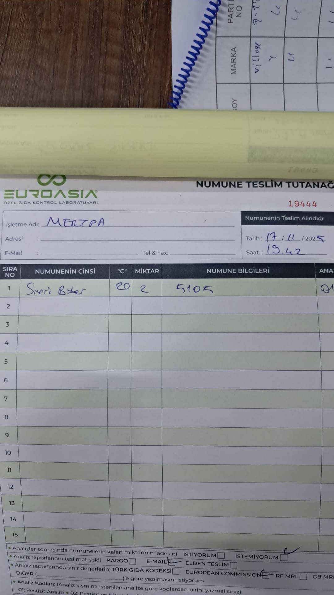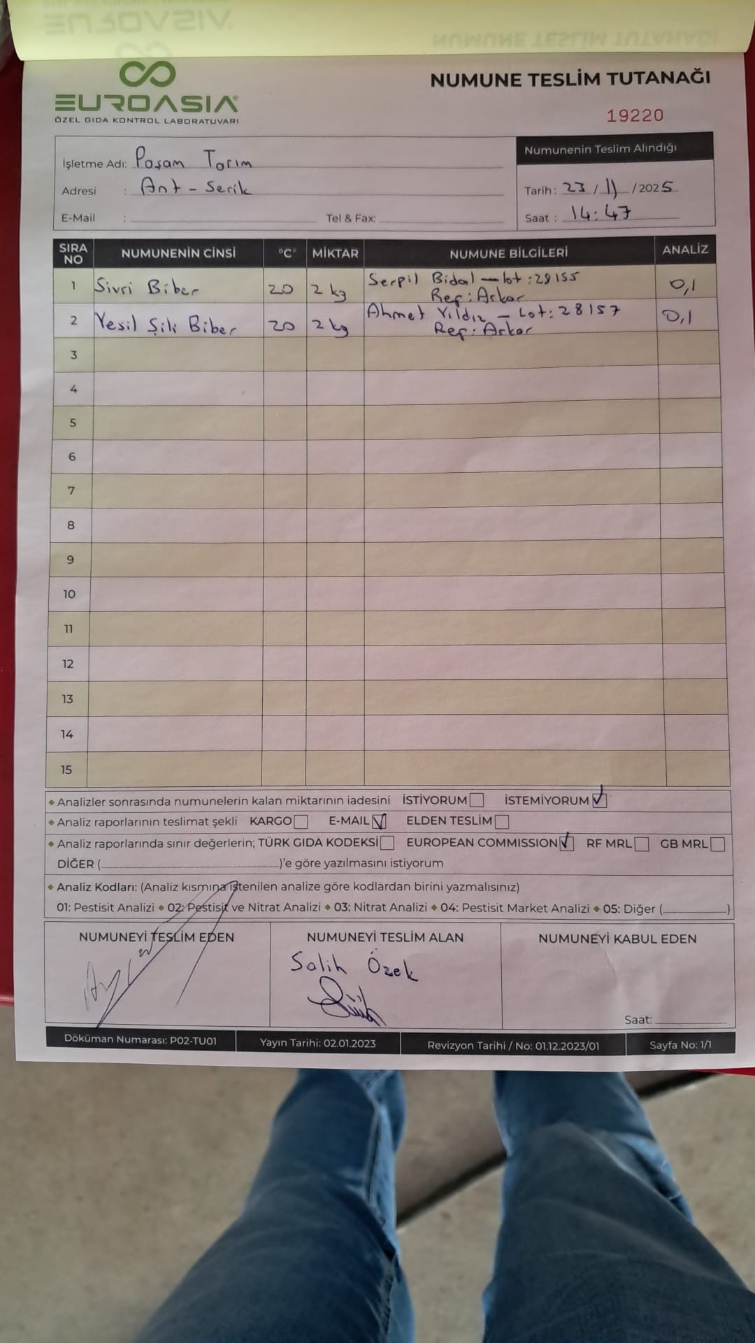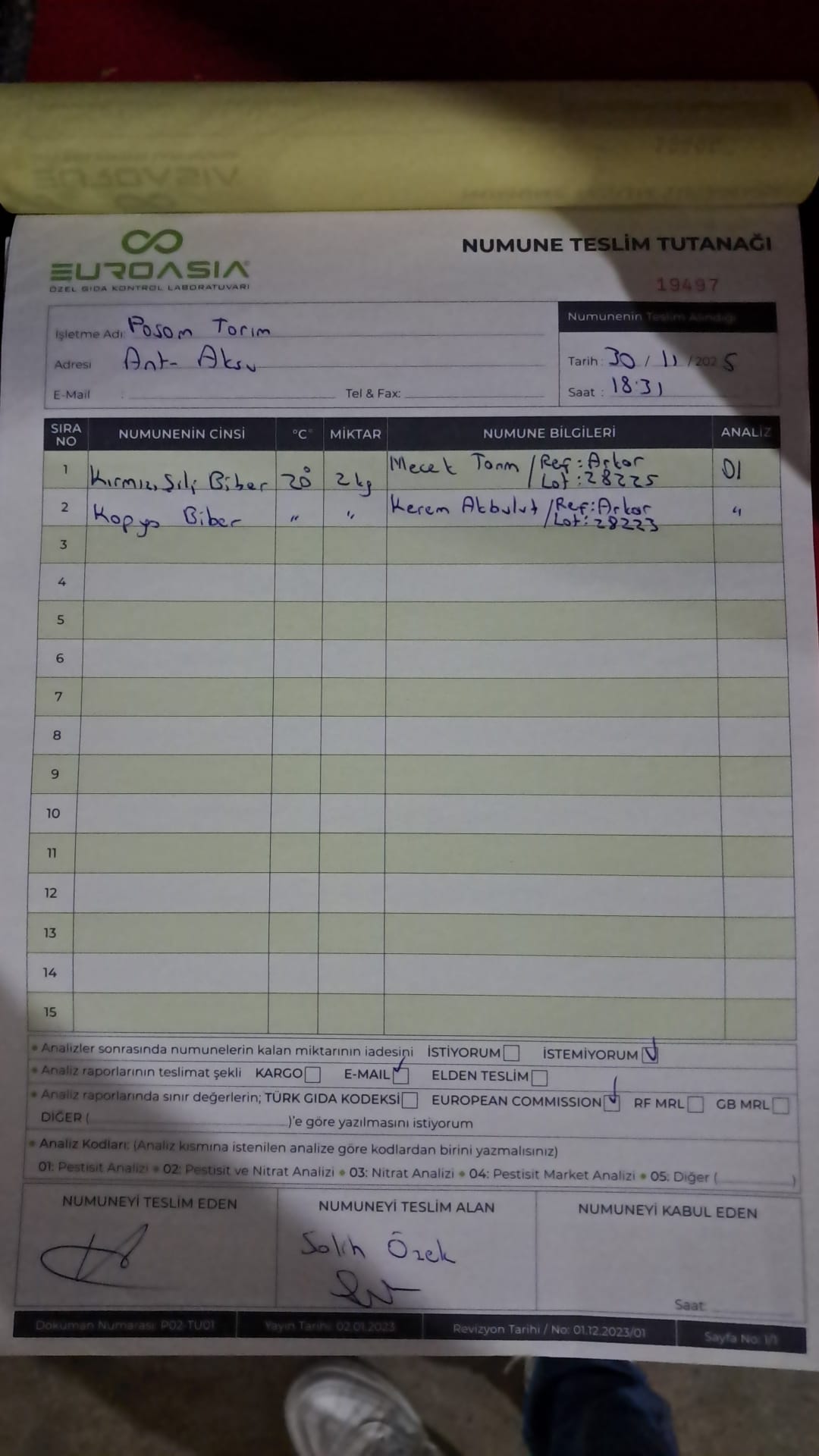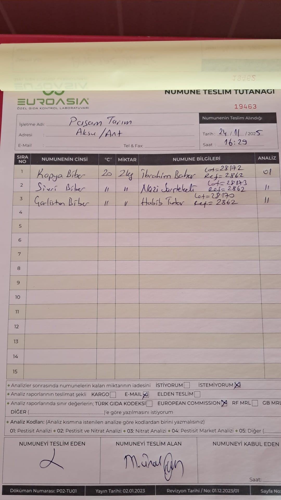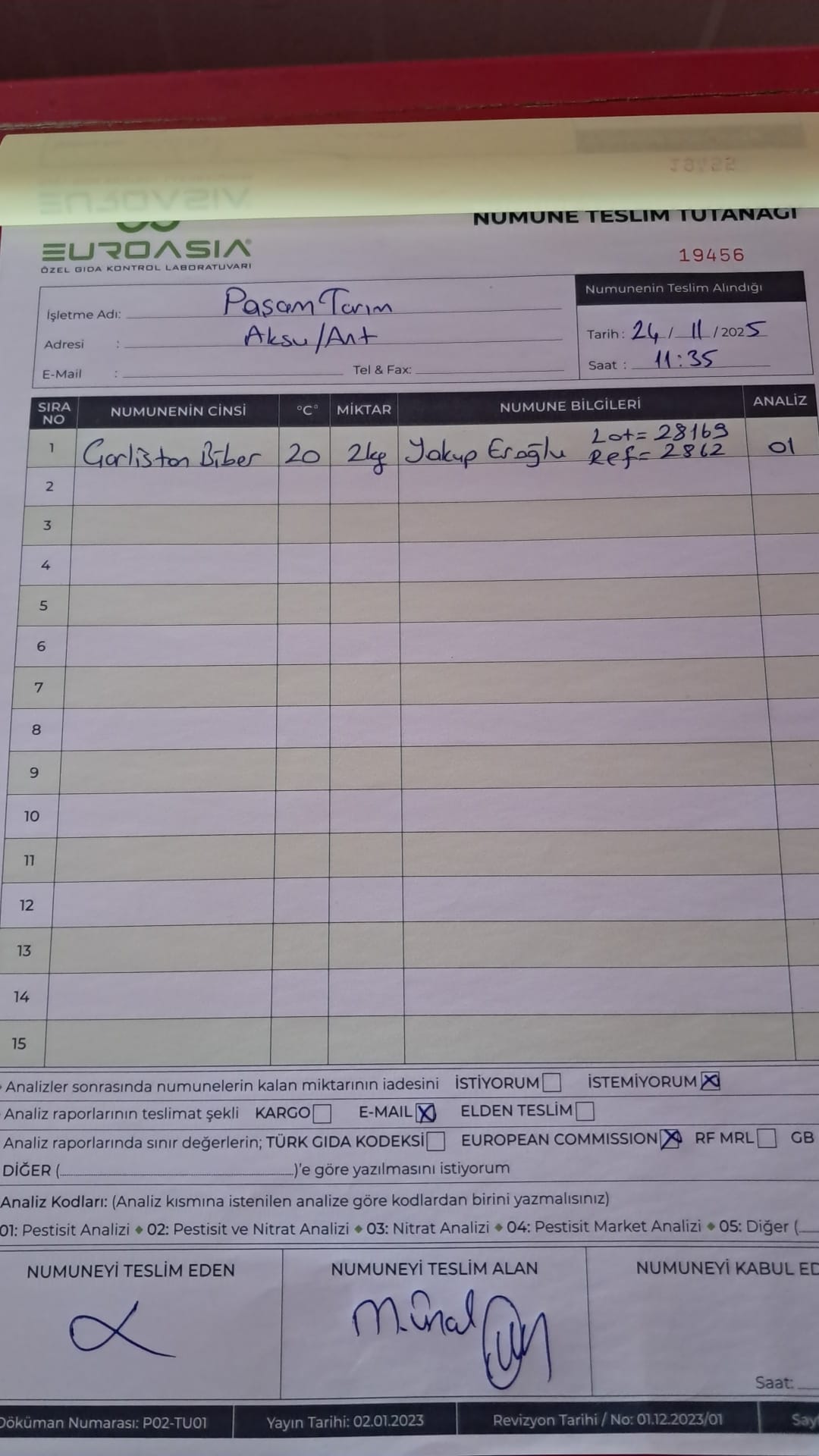 2 adet numune teslim alındı | 05.11.2025 16:15 | ||
