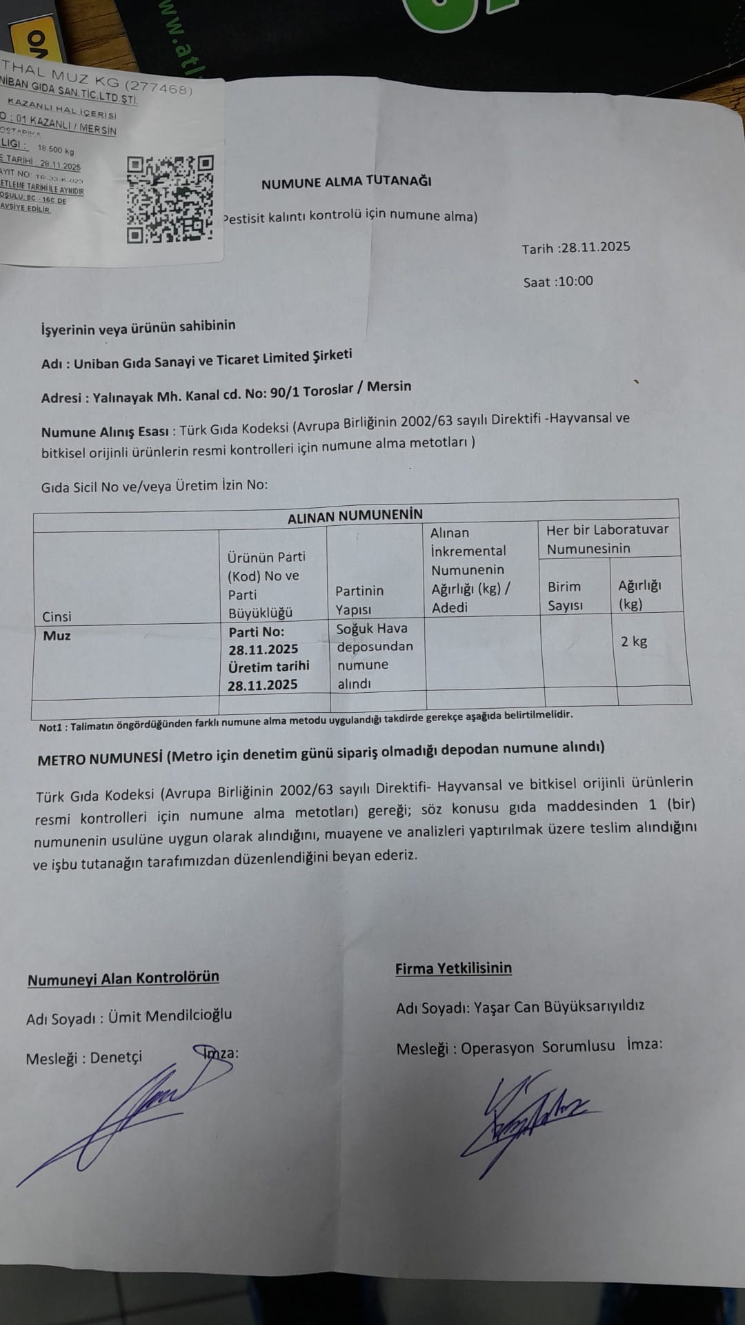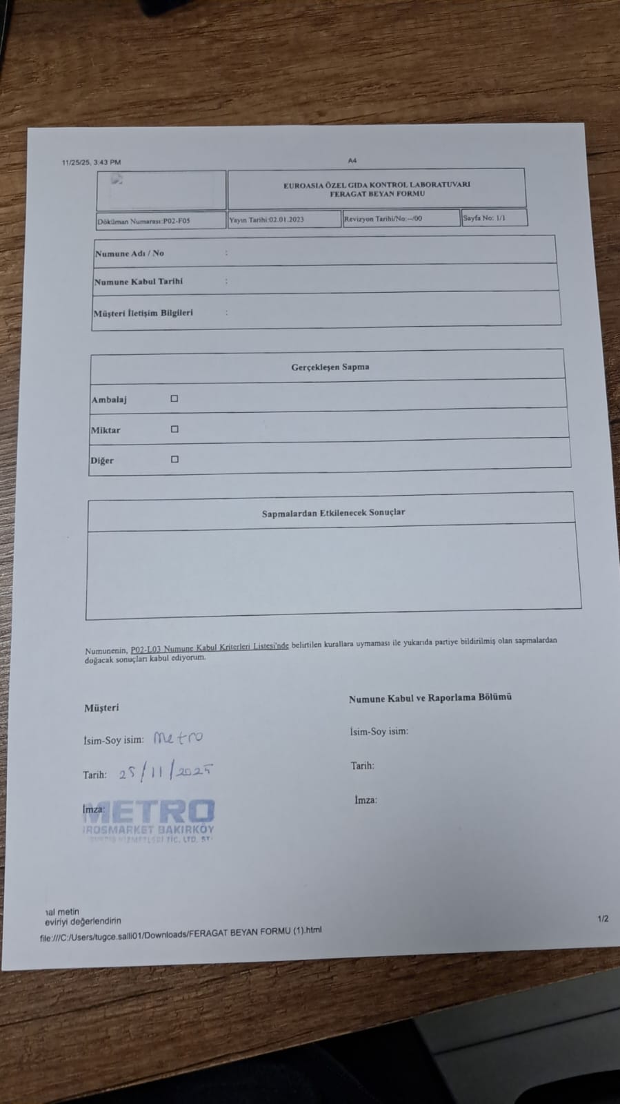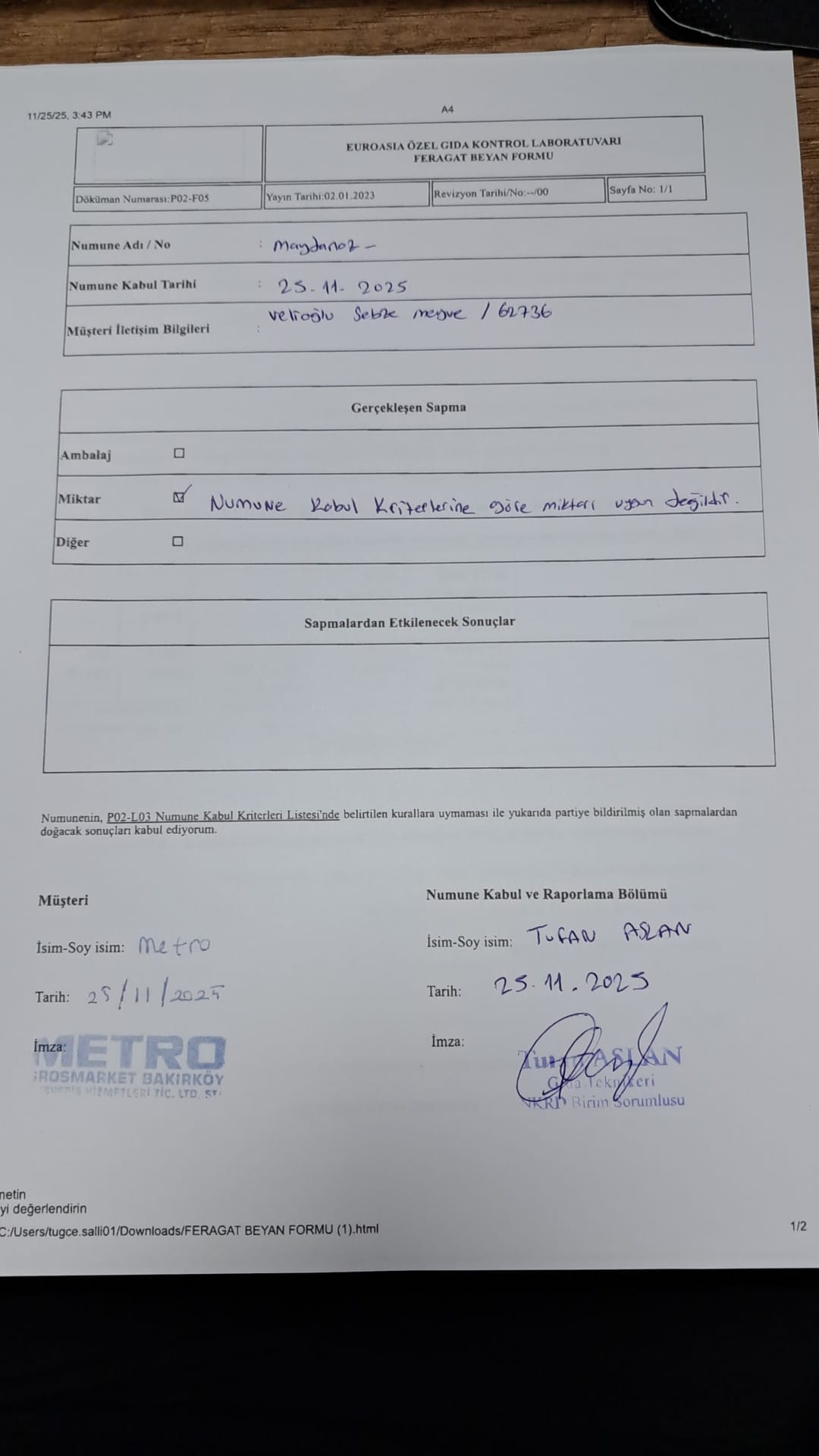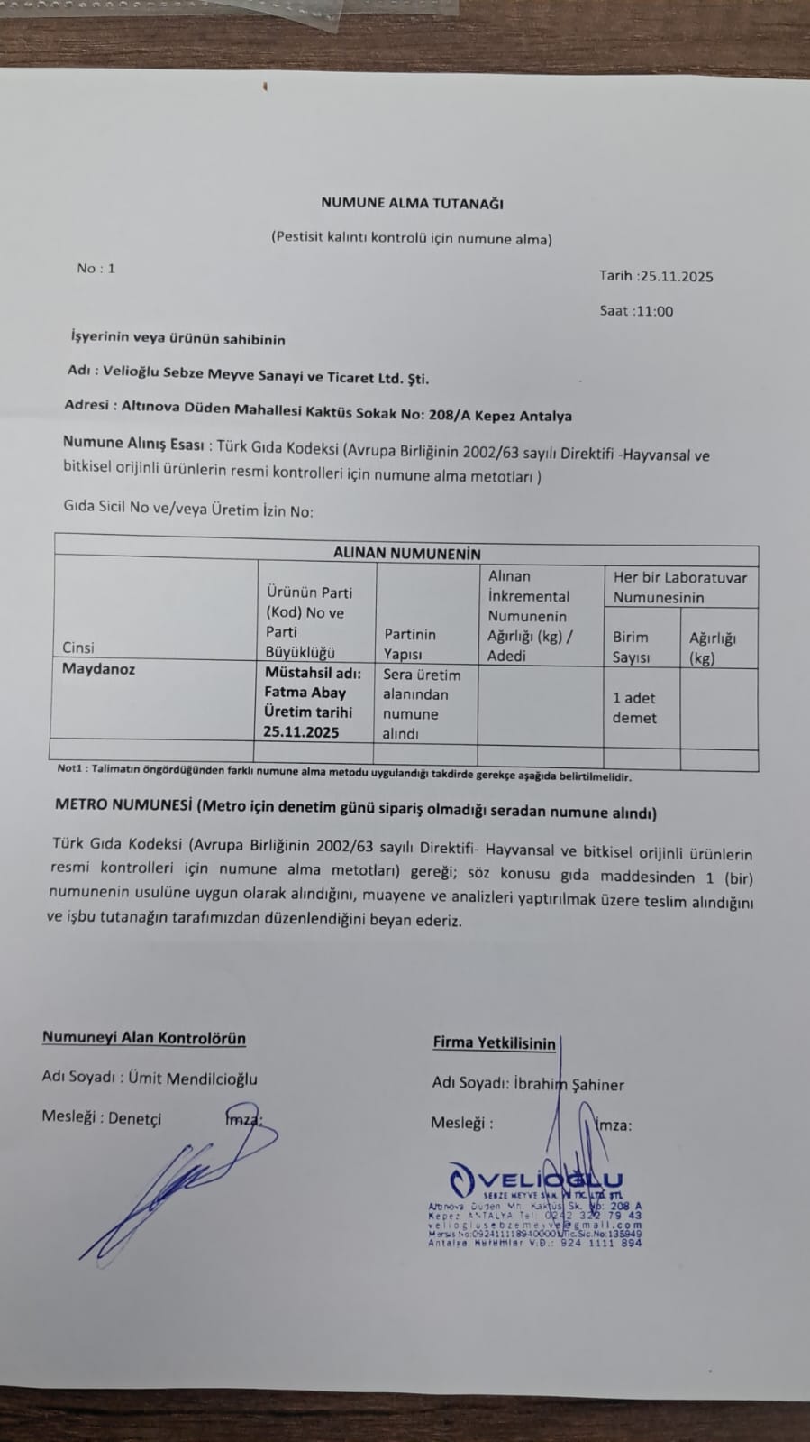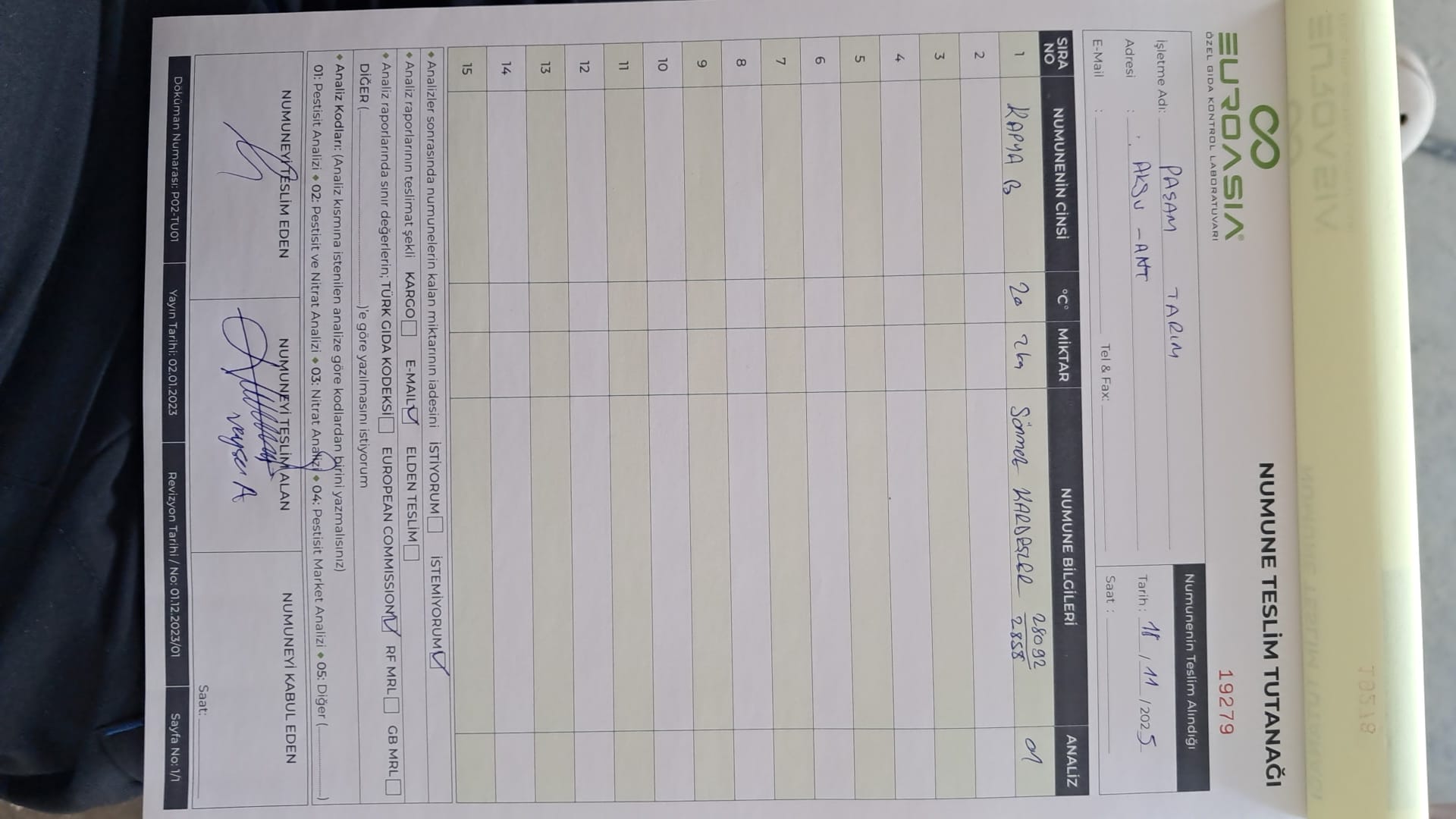 2 adet numune teslim alındı | 05.11.2025 16:15 | ||