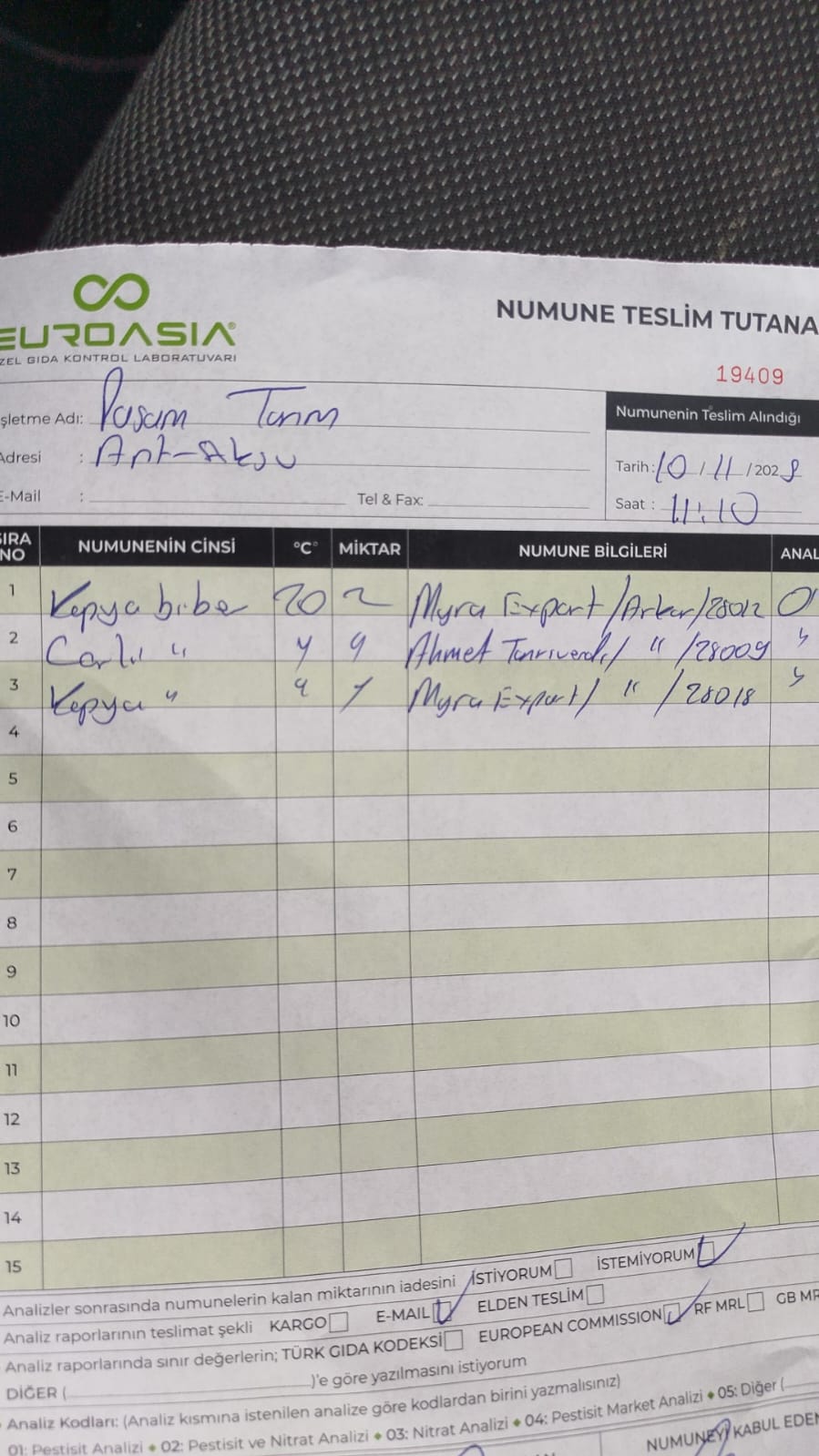 Toplam 3 adet numune teslim alındı | 05.11.2025 15:16 | ||