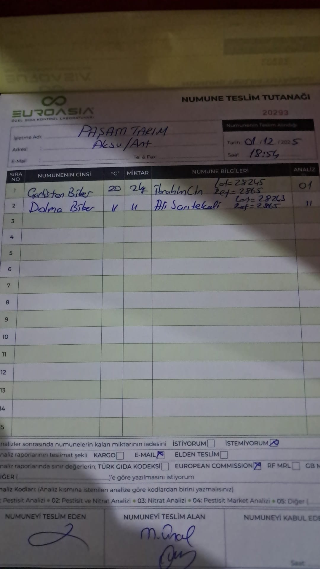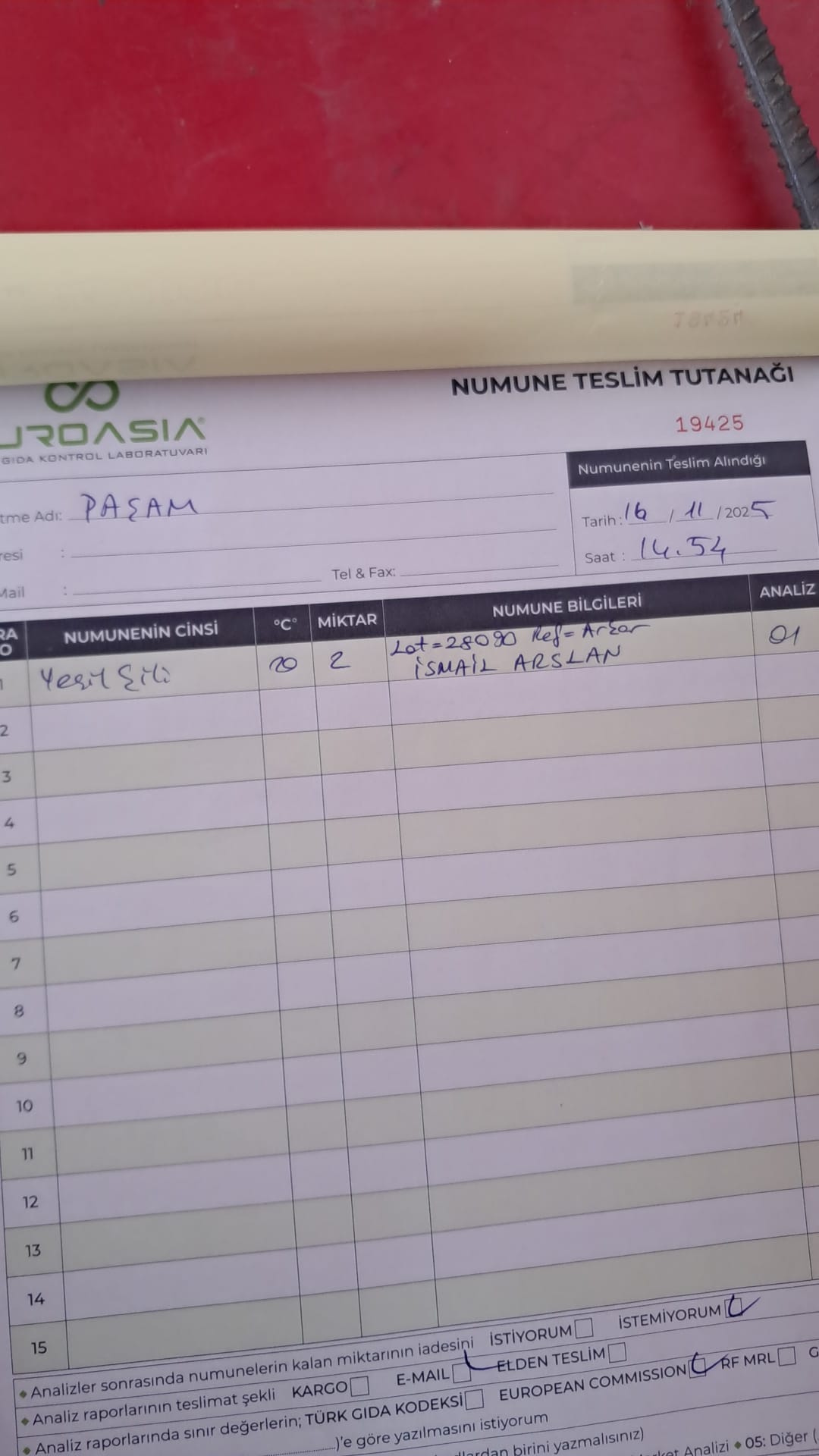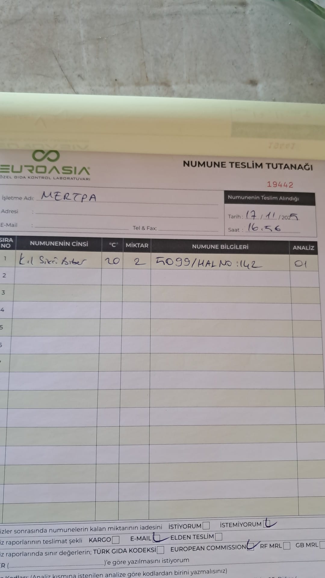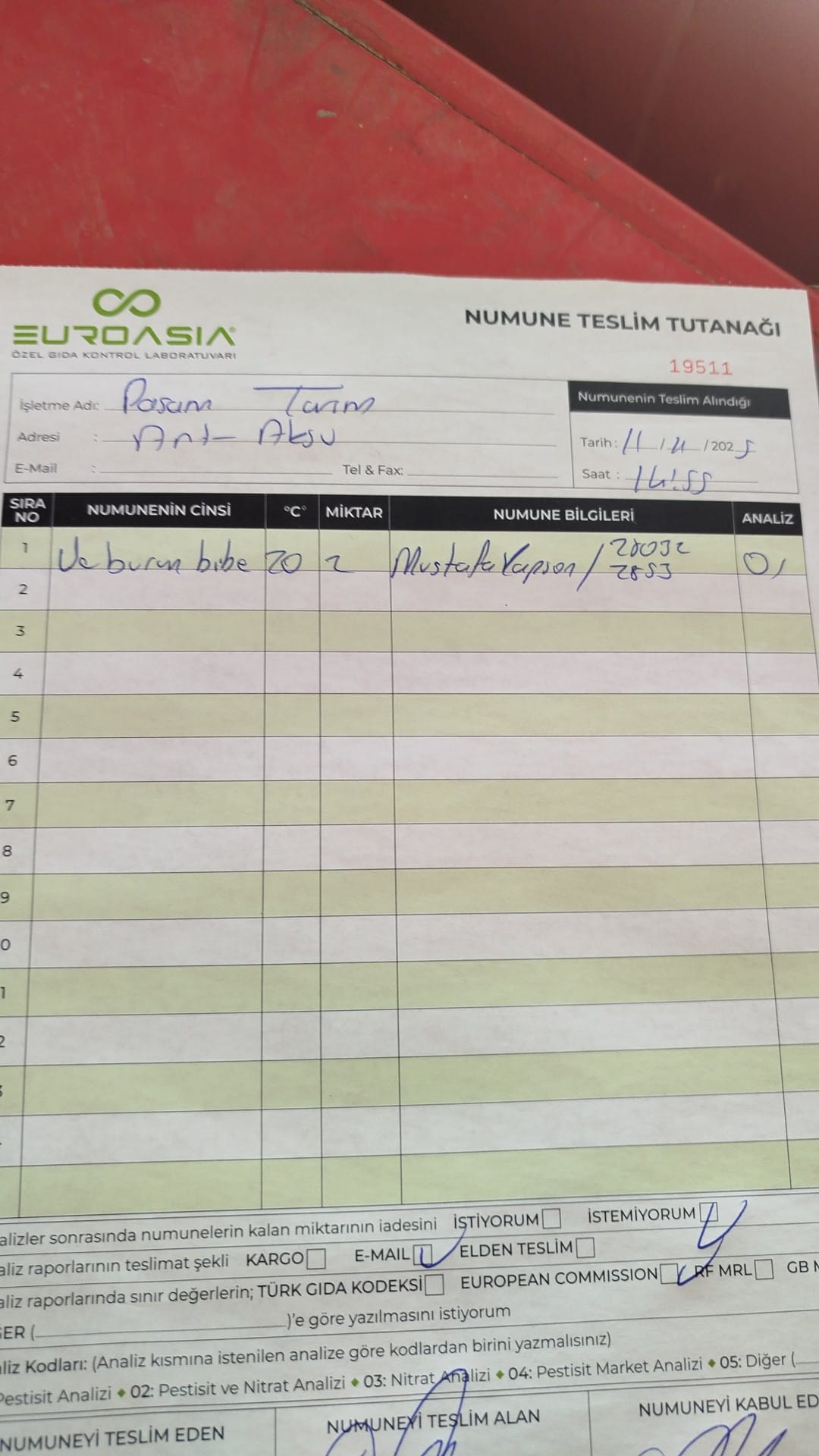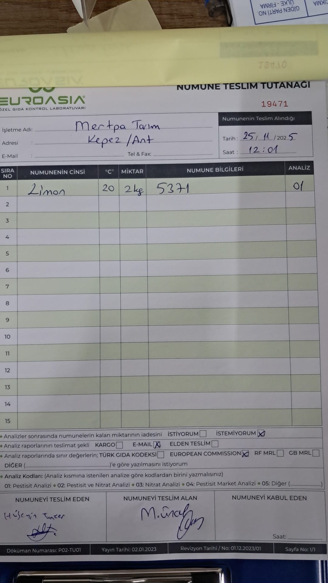 1 adet numune teslim alındı | 05.12.2025 21:52 | ||