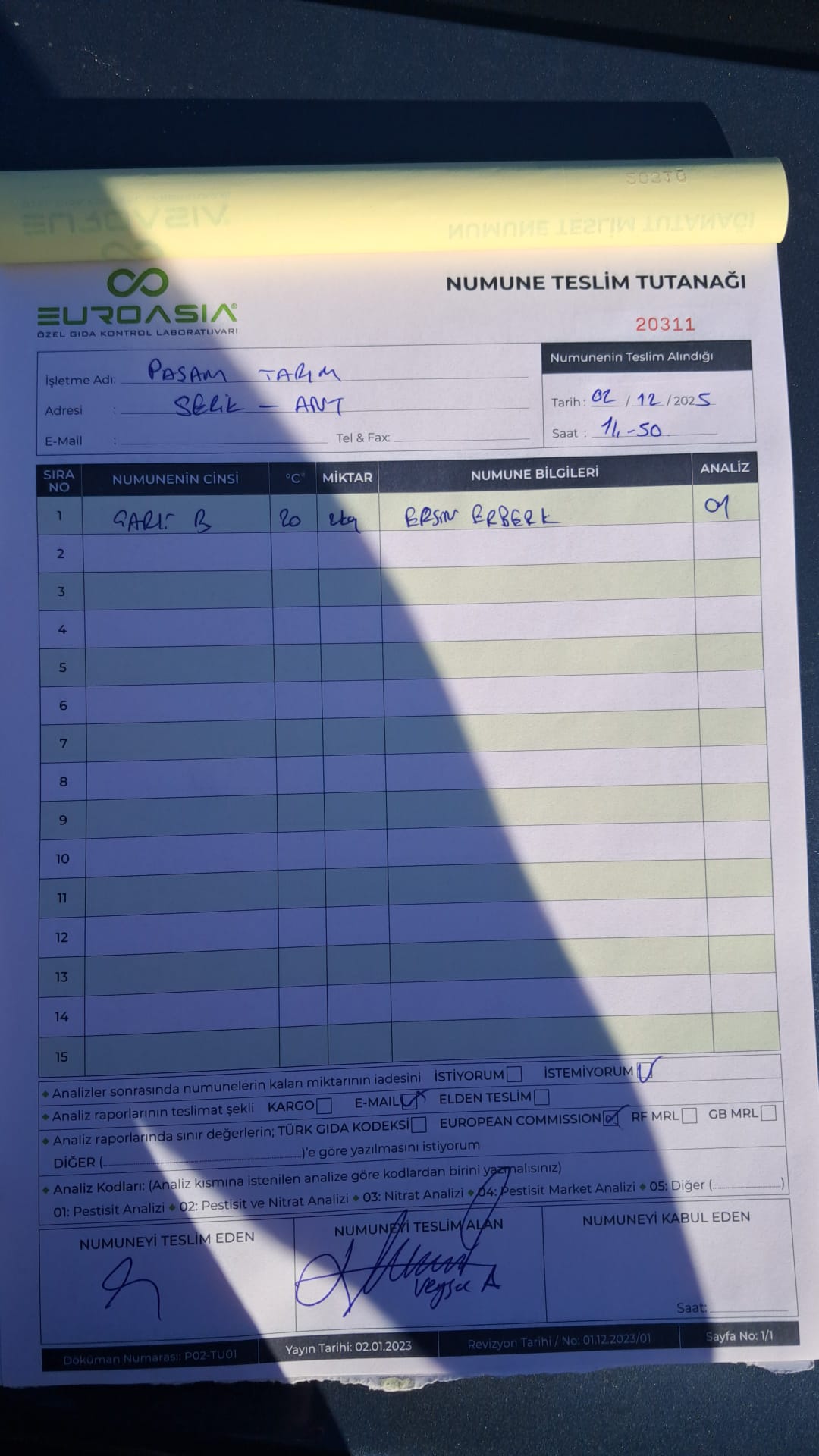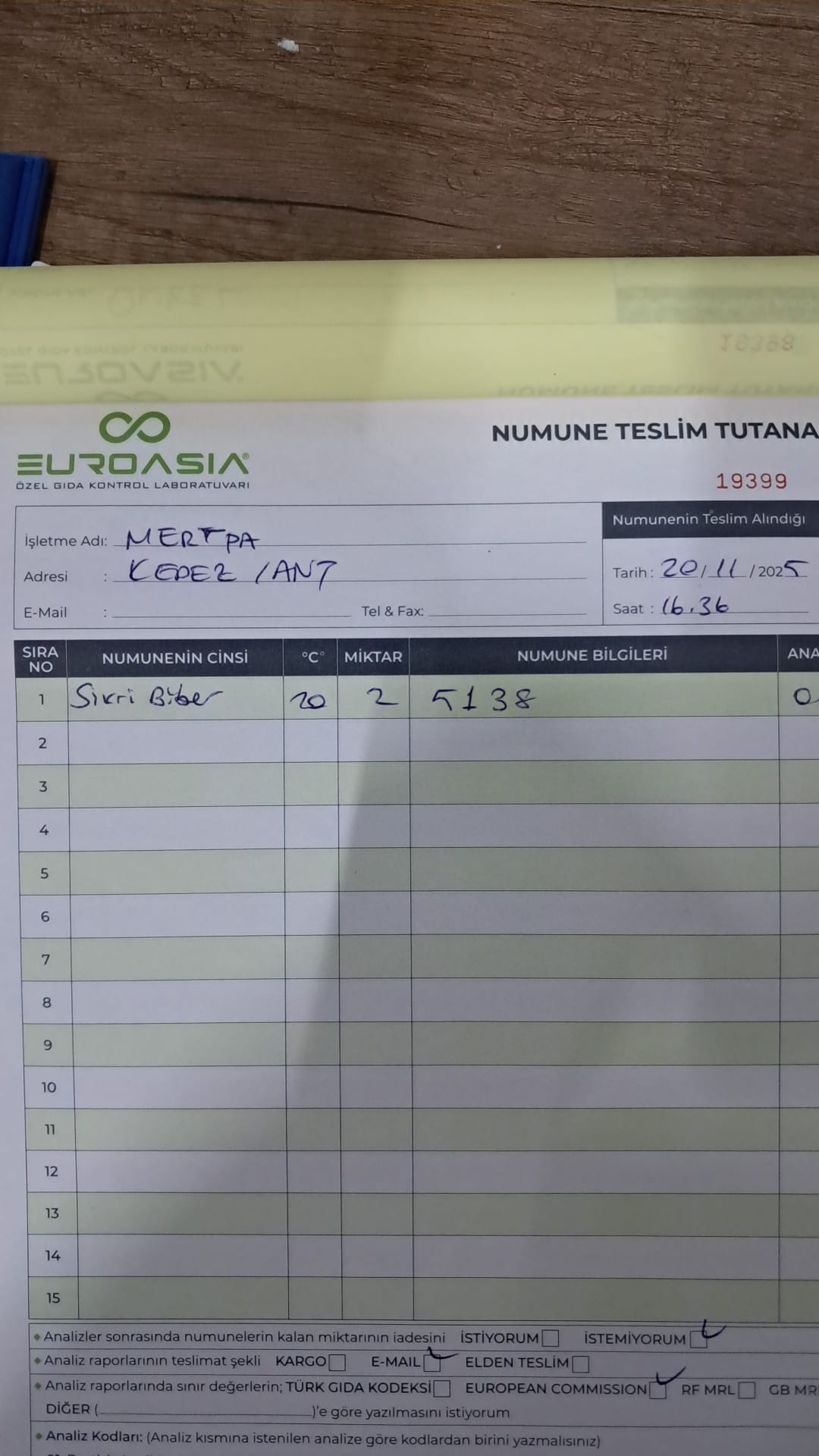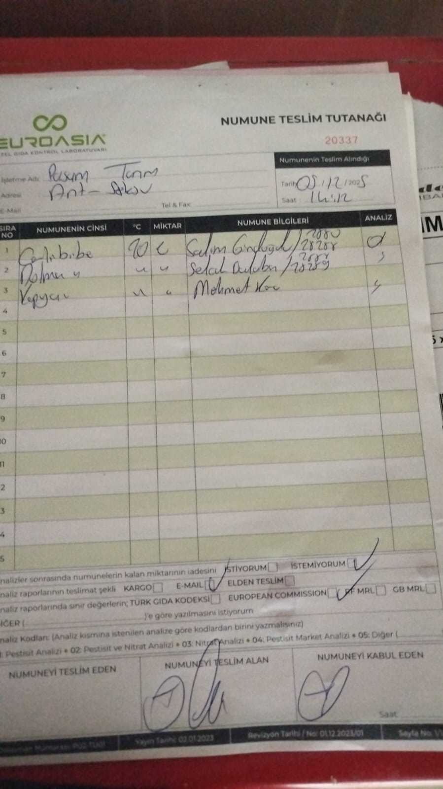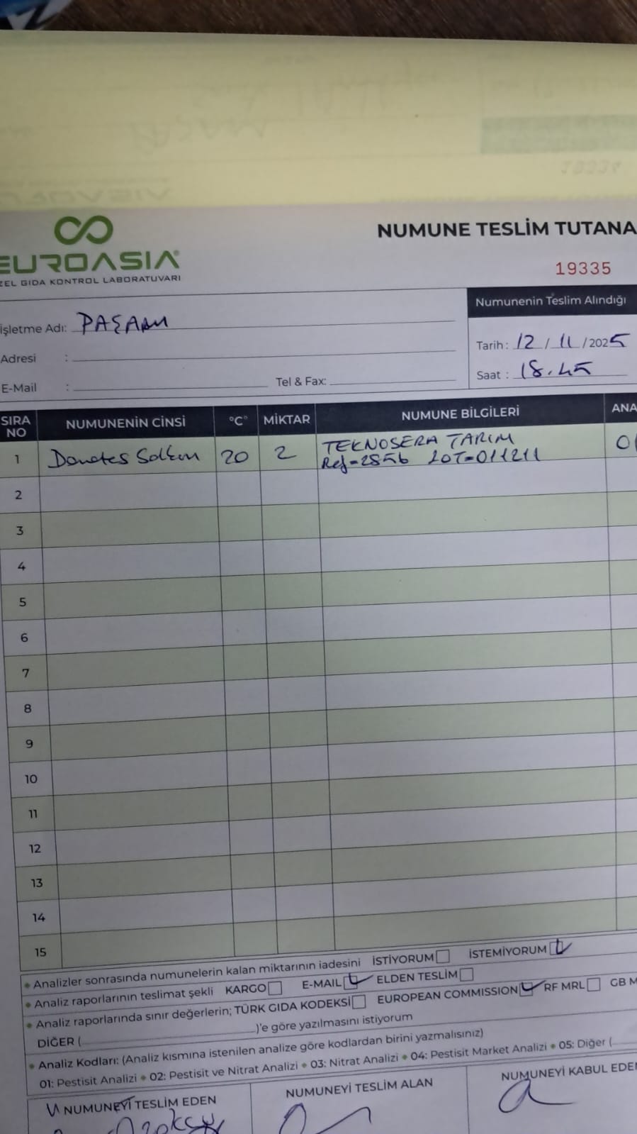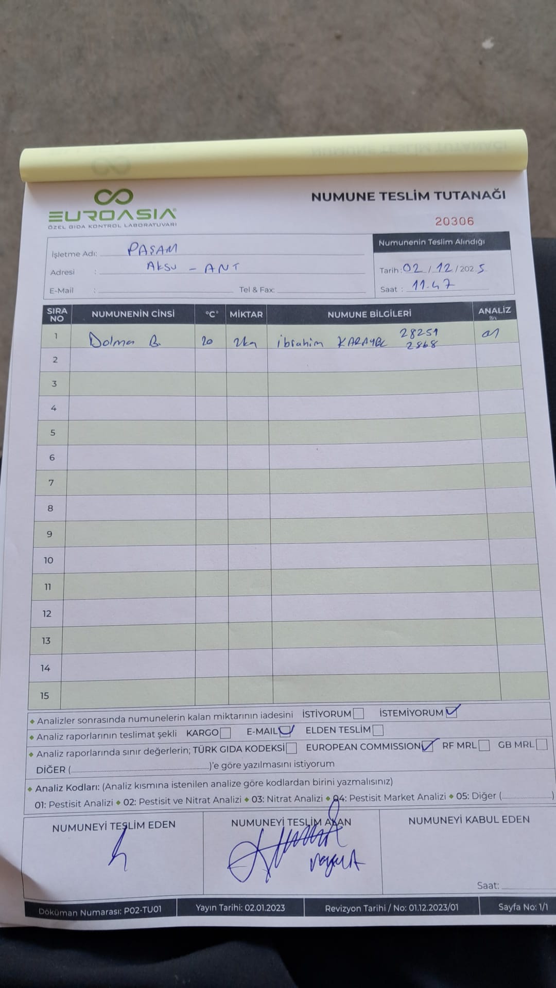 1 adet numune teslim alındı | 05.12.2025 21:52 | ||