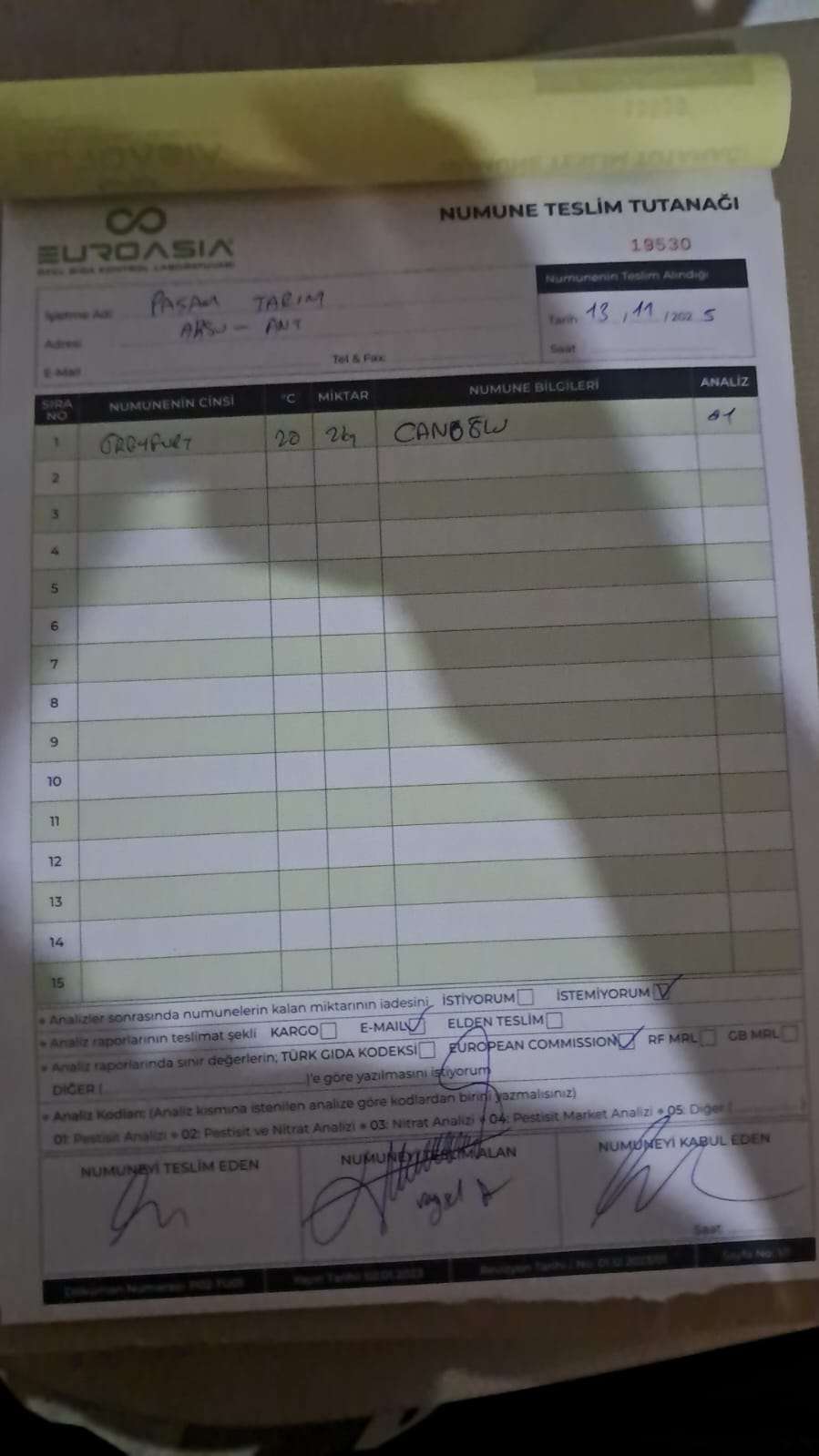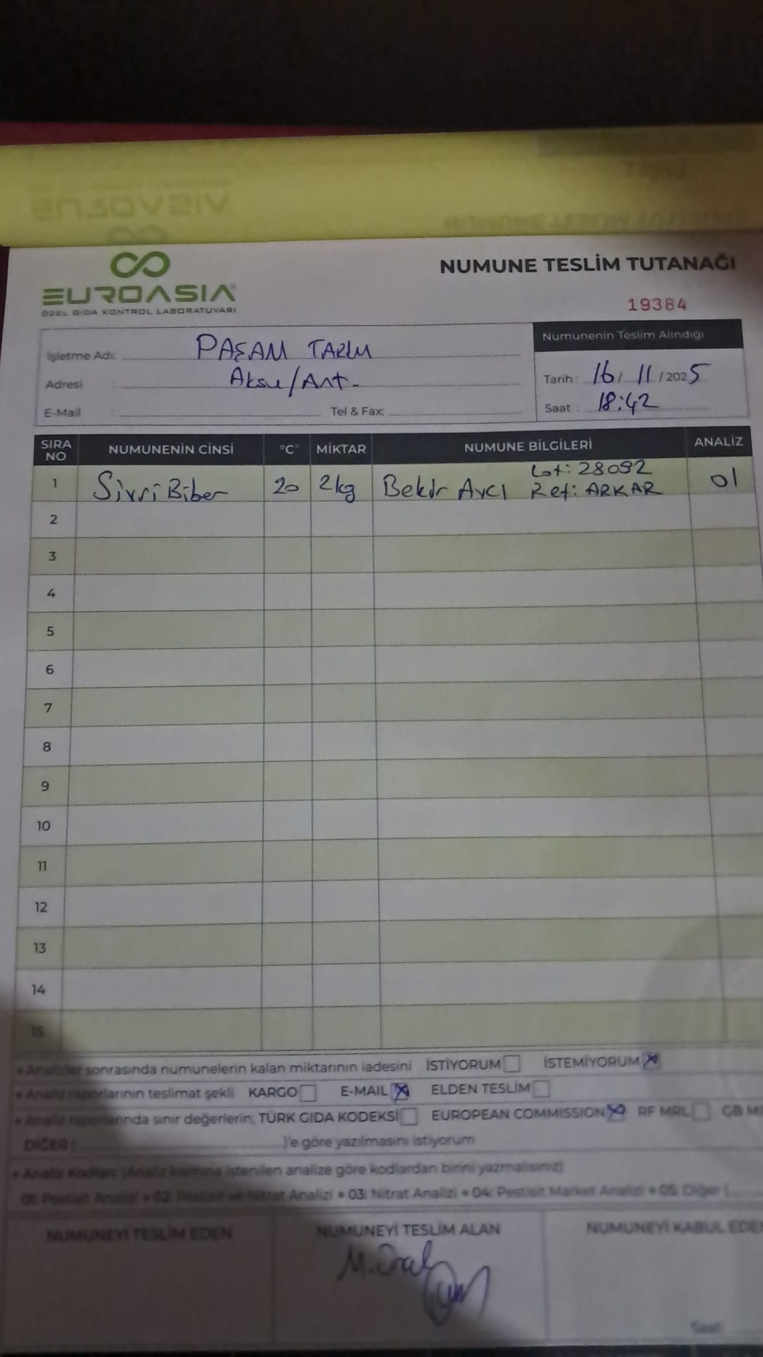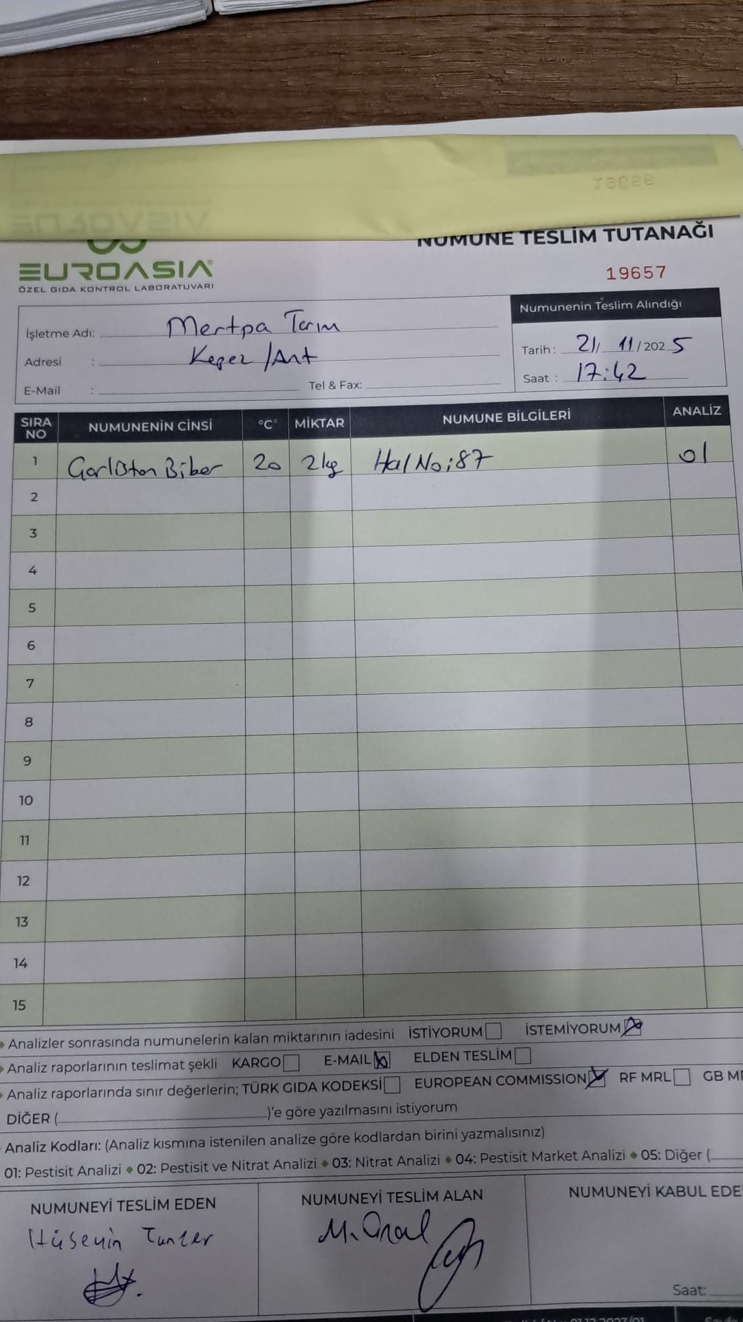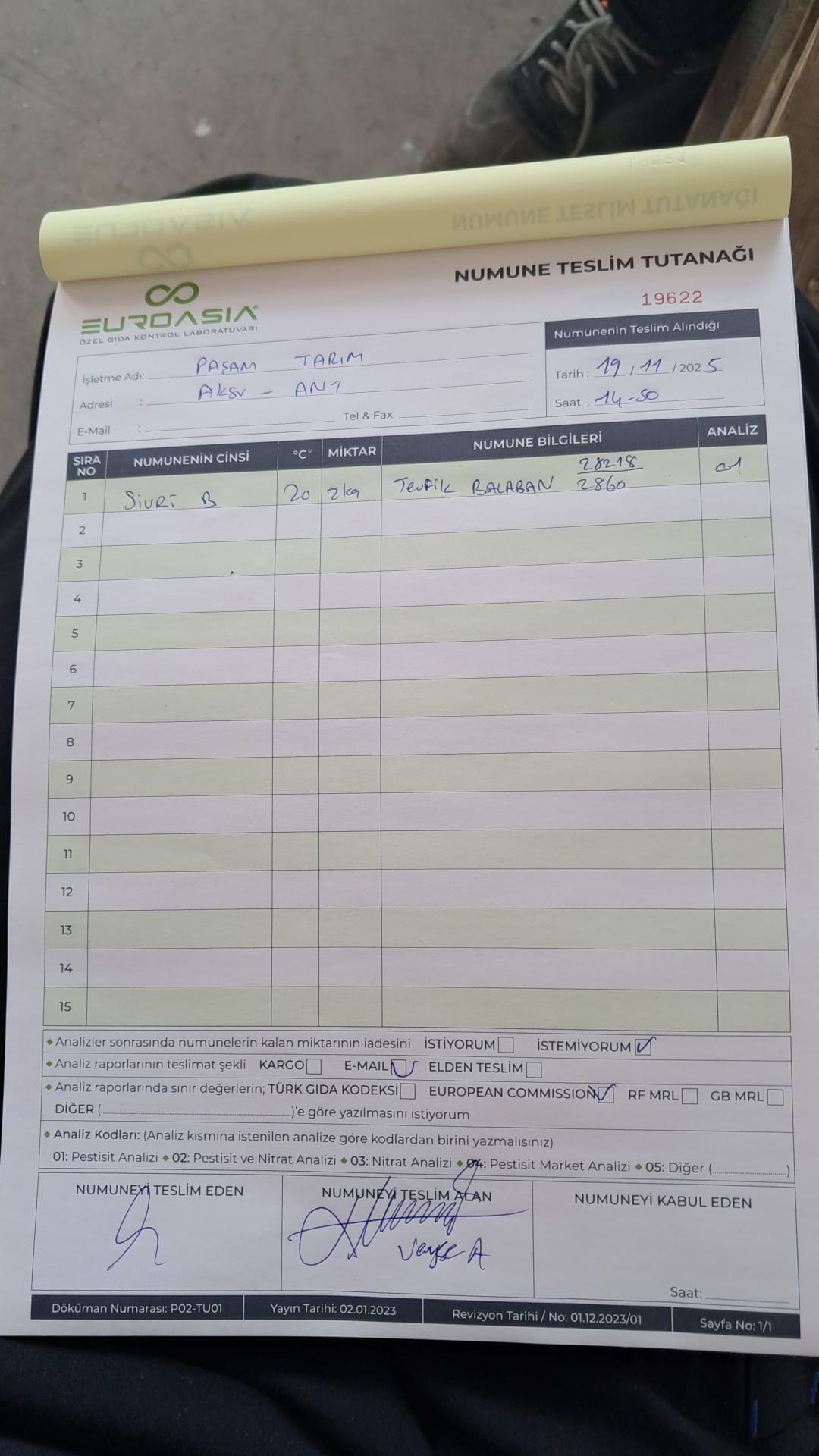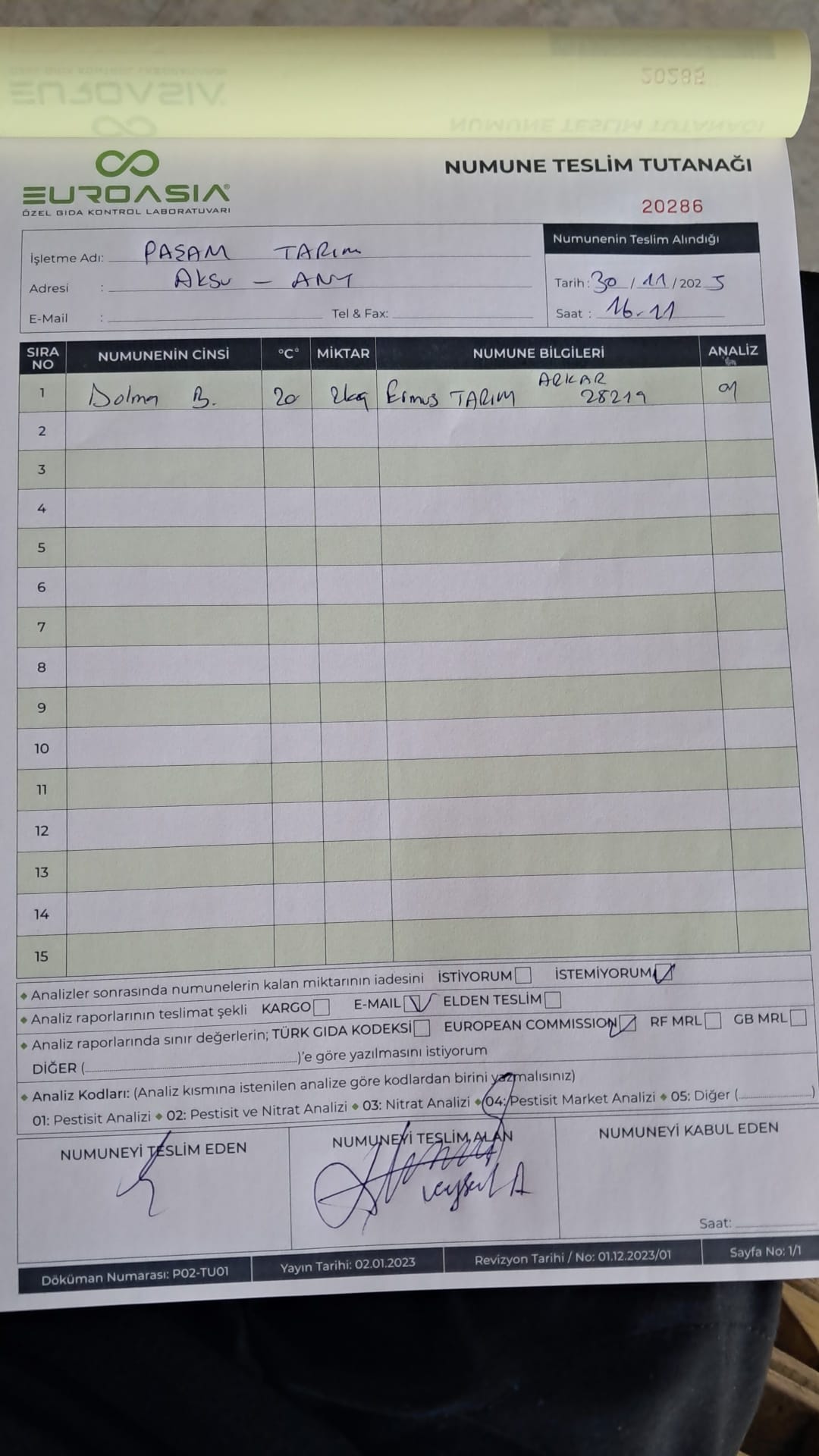 1 adet numune teslim alındı | 05.12.2025 21:52 | ||