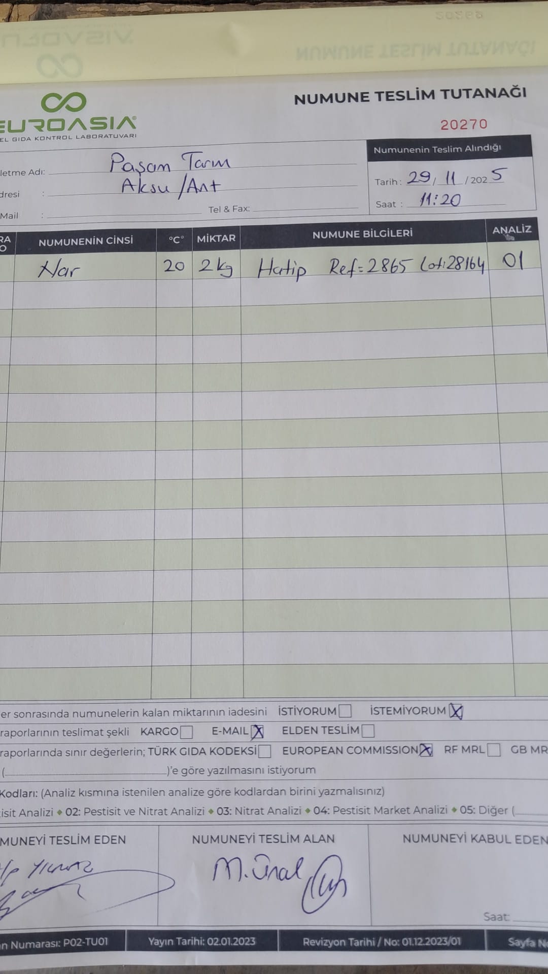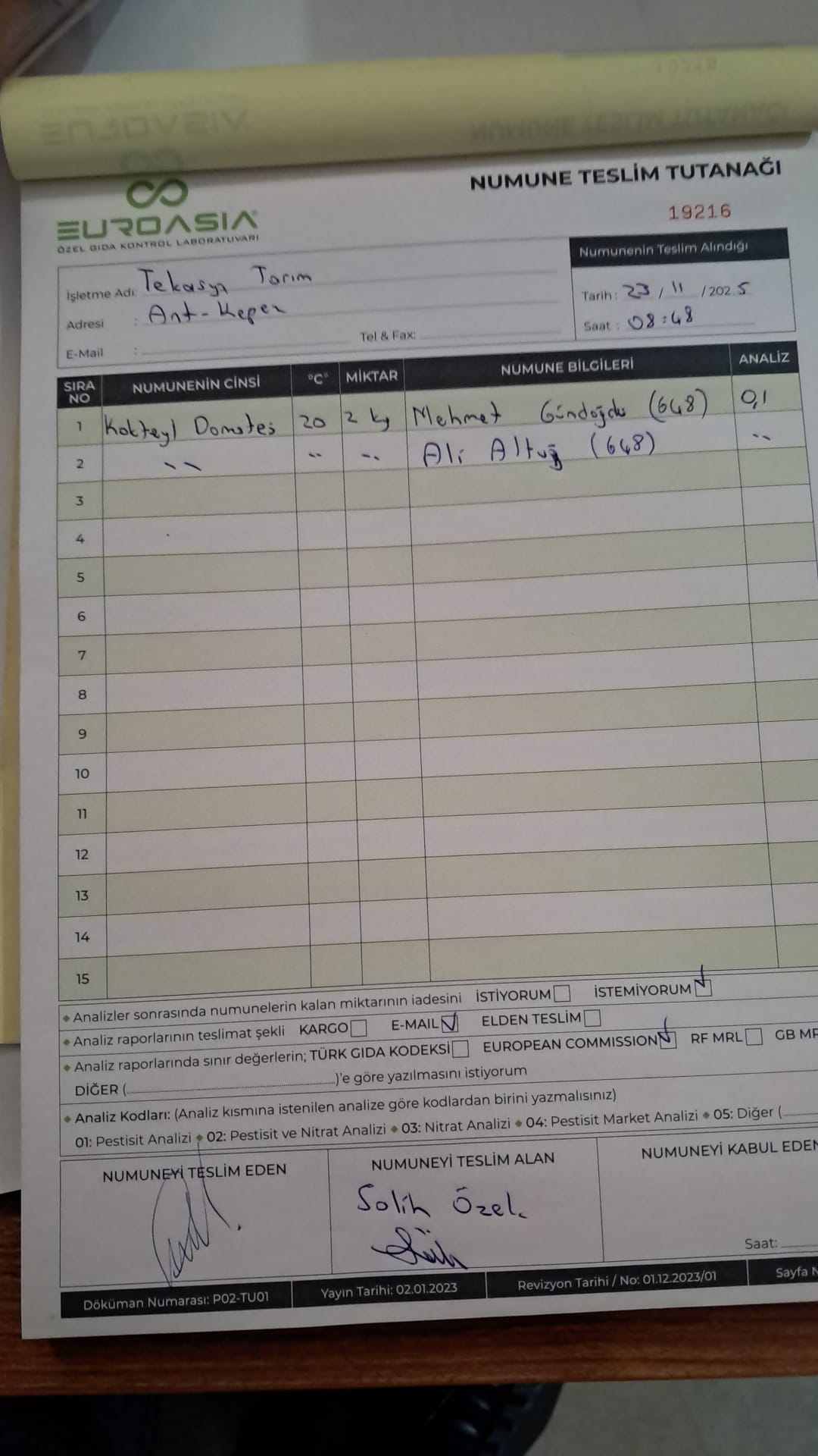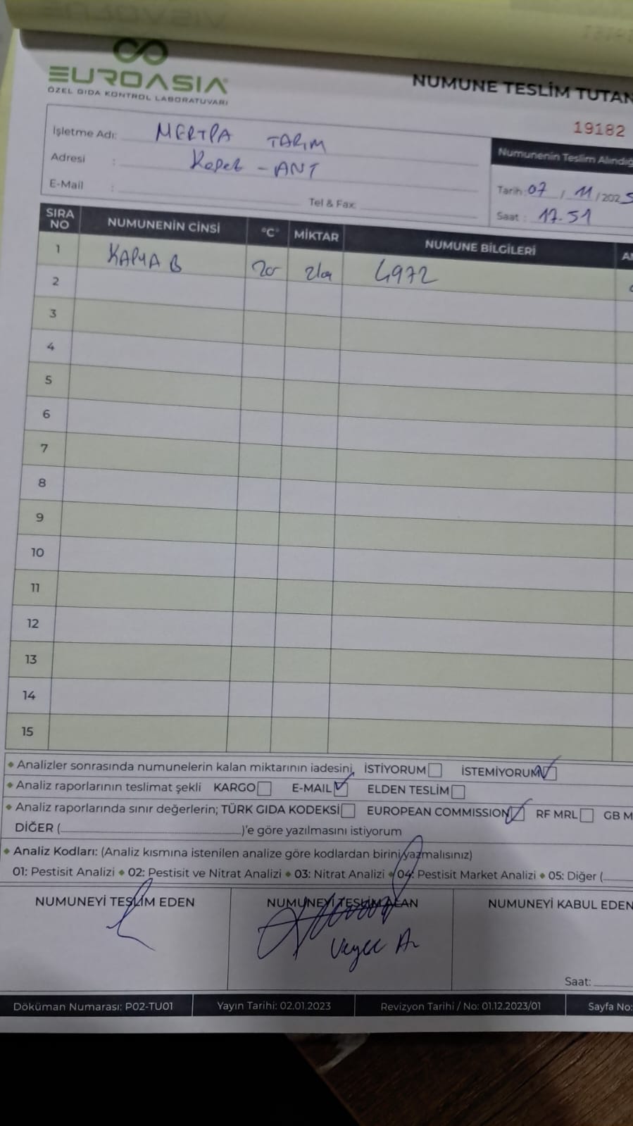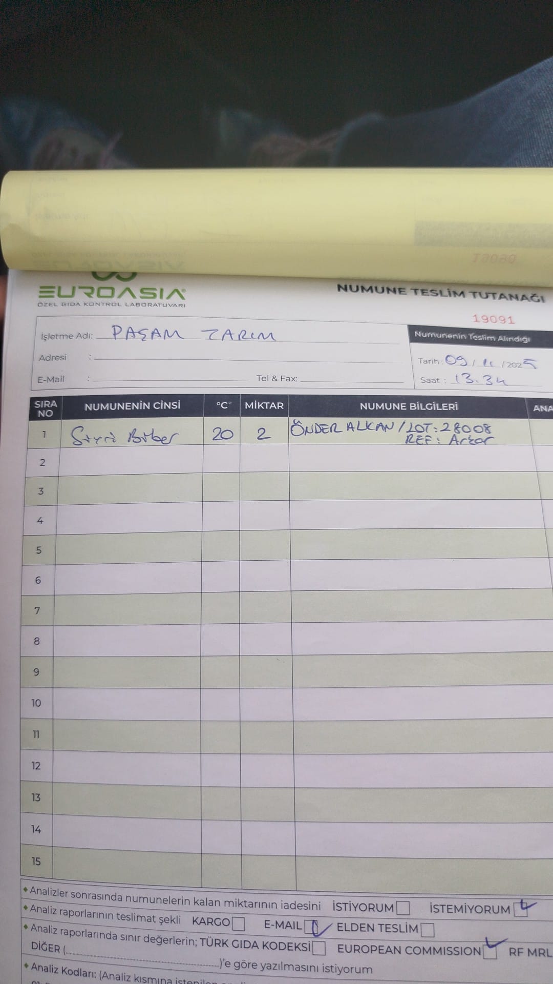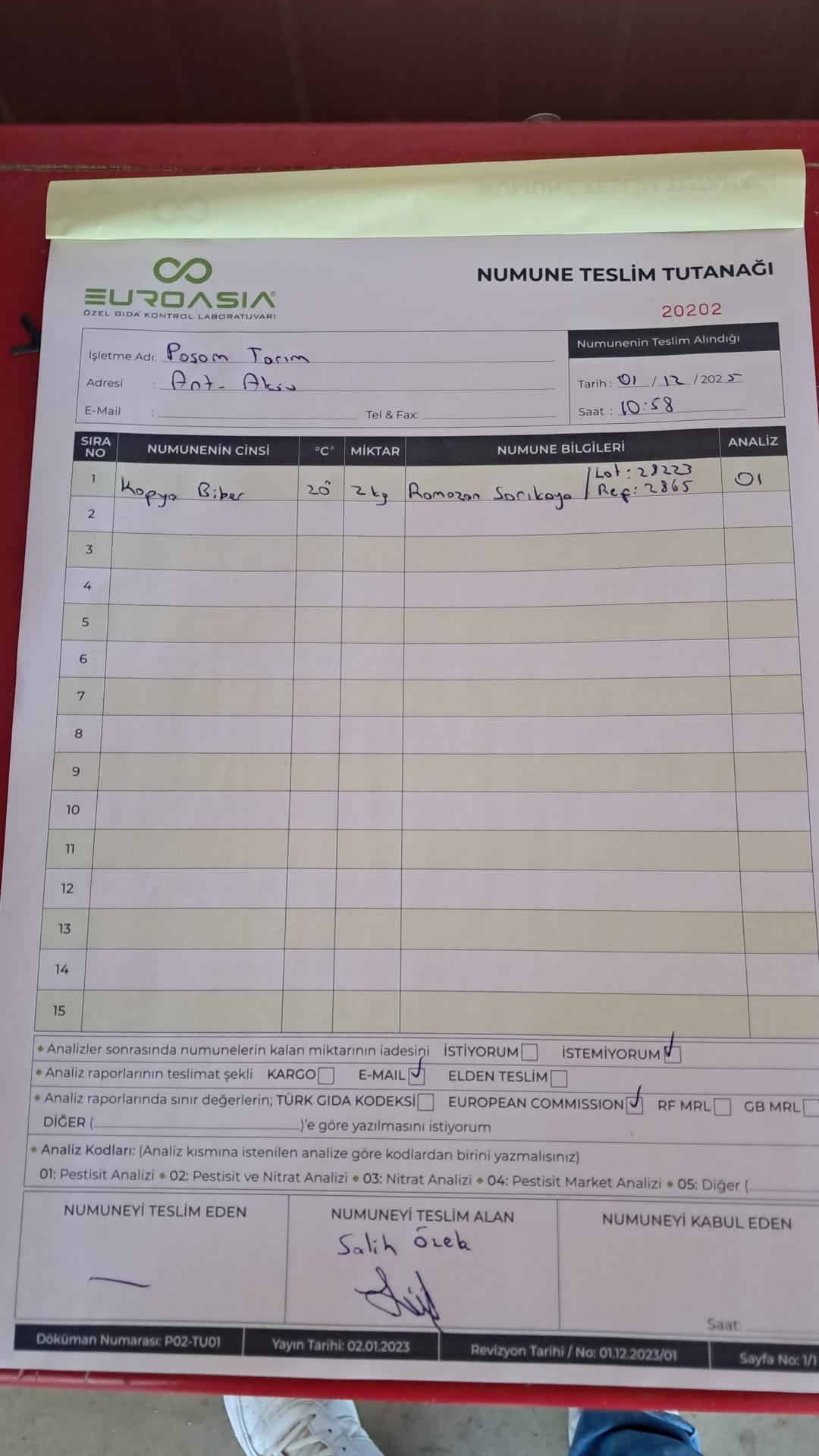 1 adet numune teslim alındı | 05.12.2025 21:52 | ||