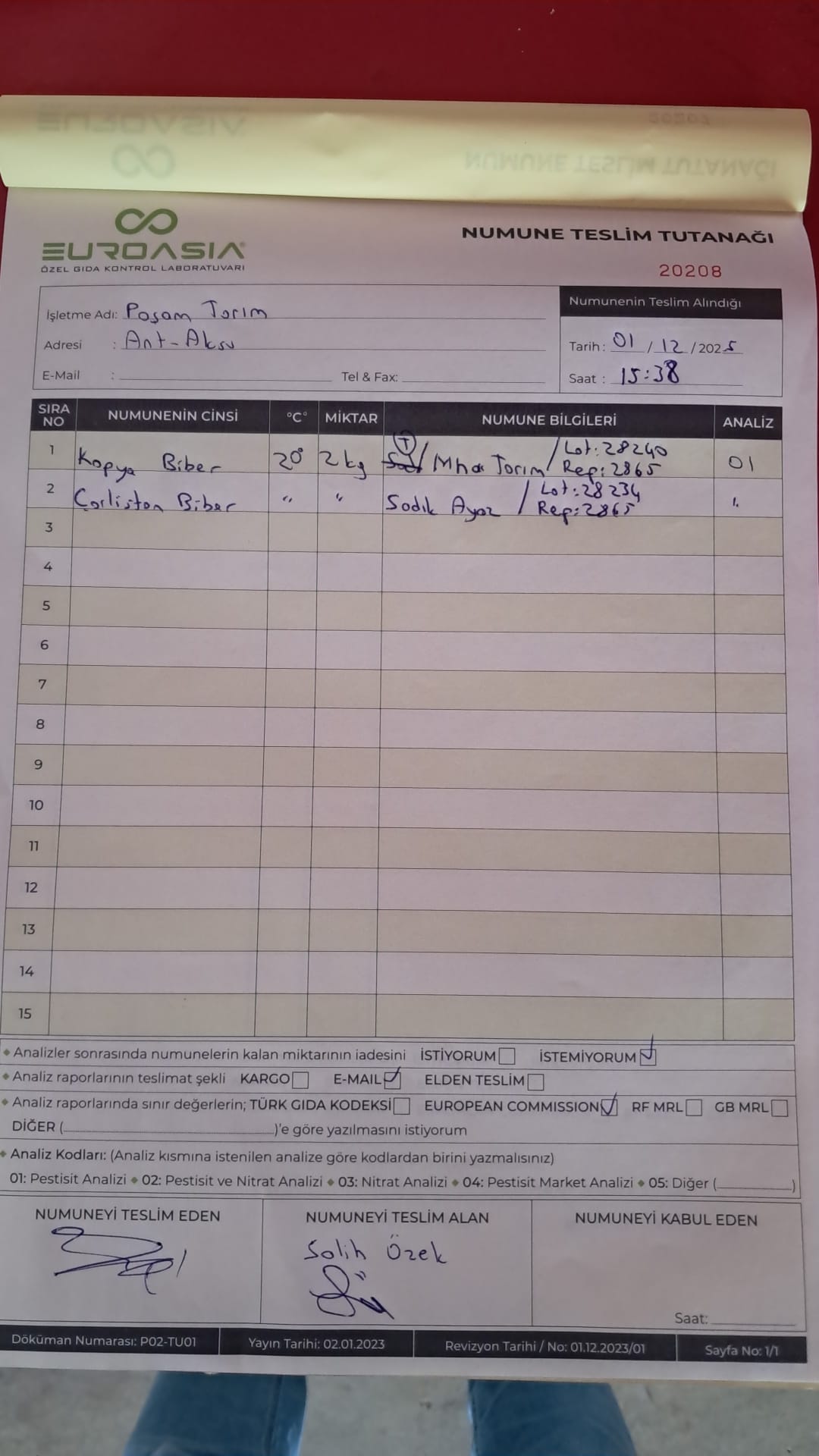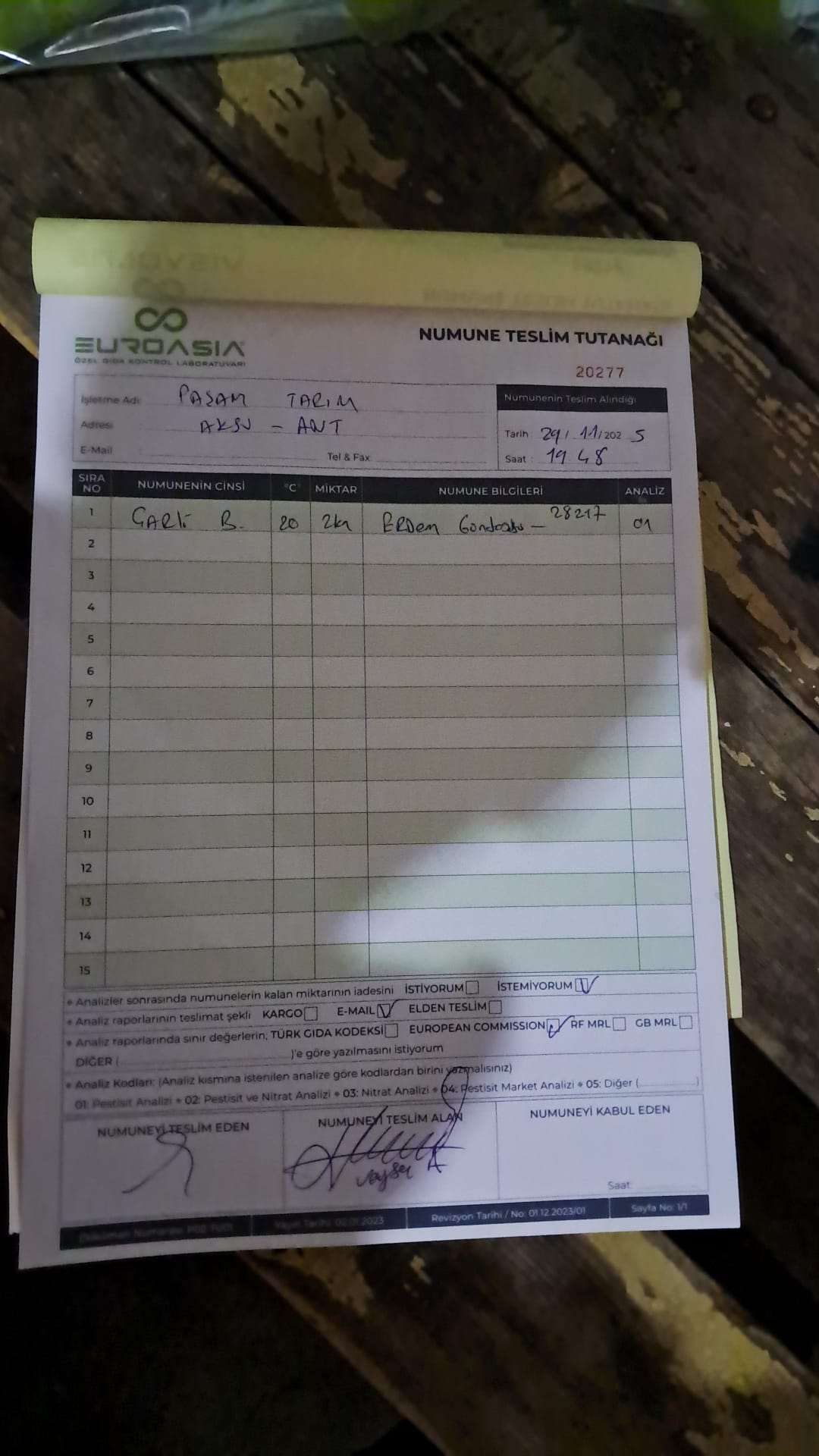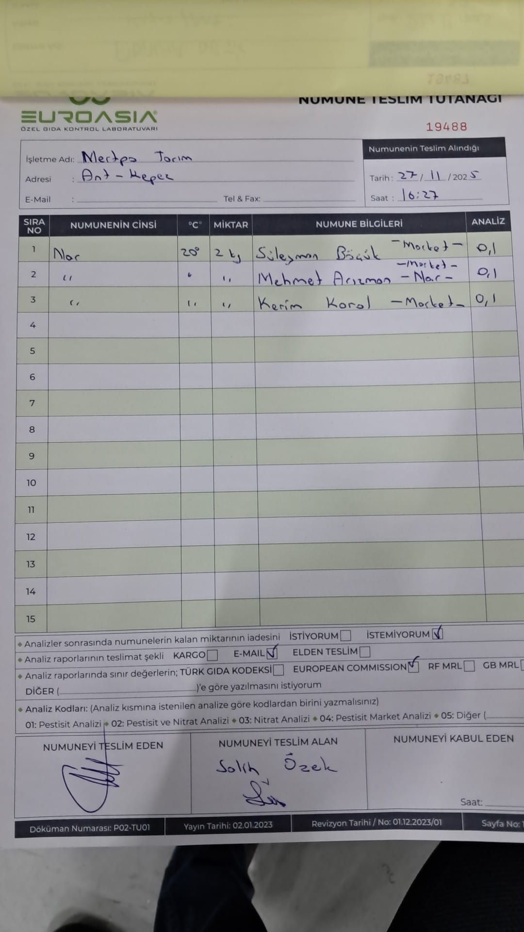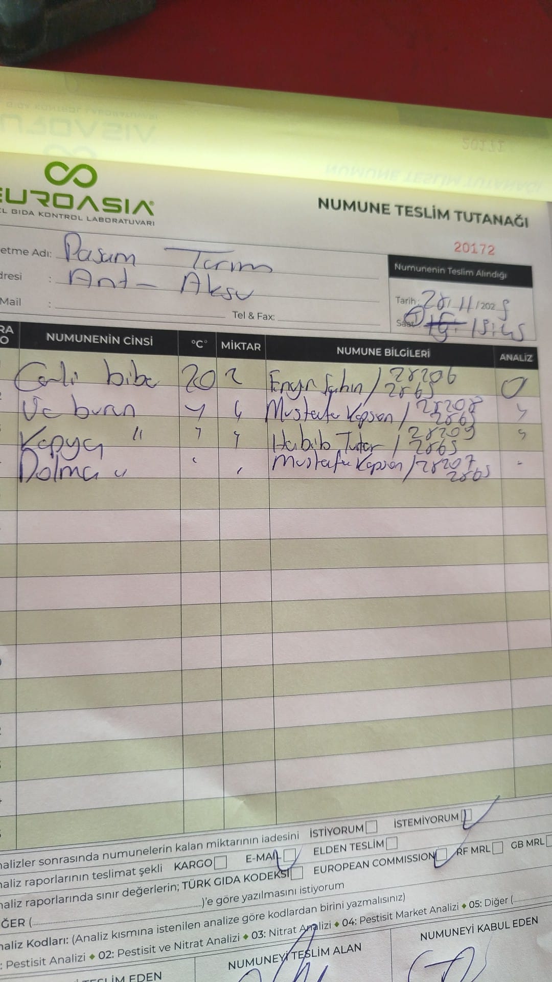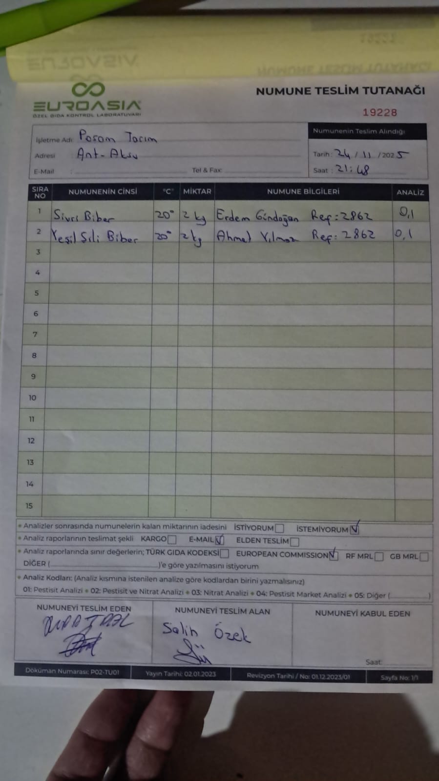 1 adet numune teslim alındı | 05.12.2025 21:52 | ||