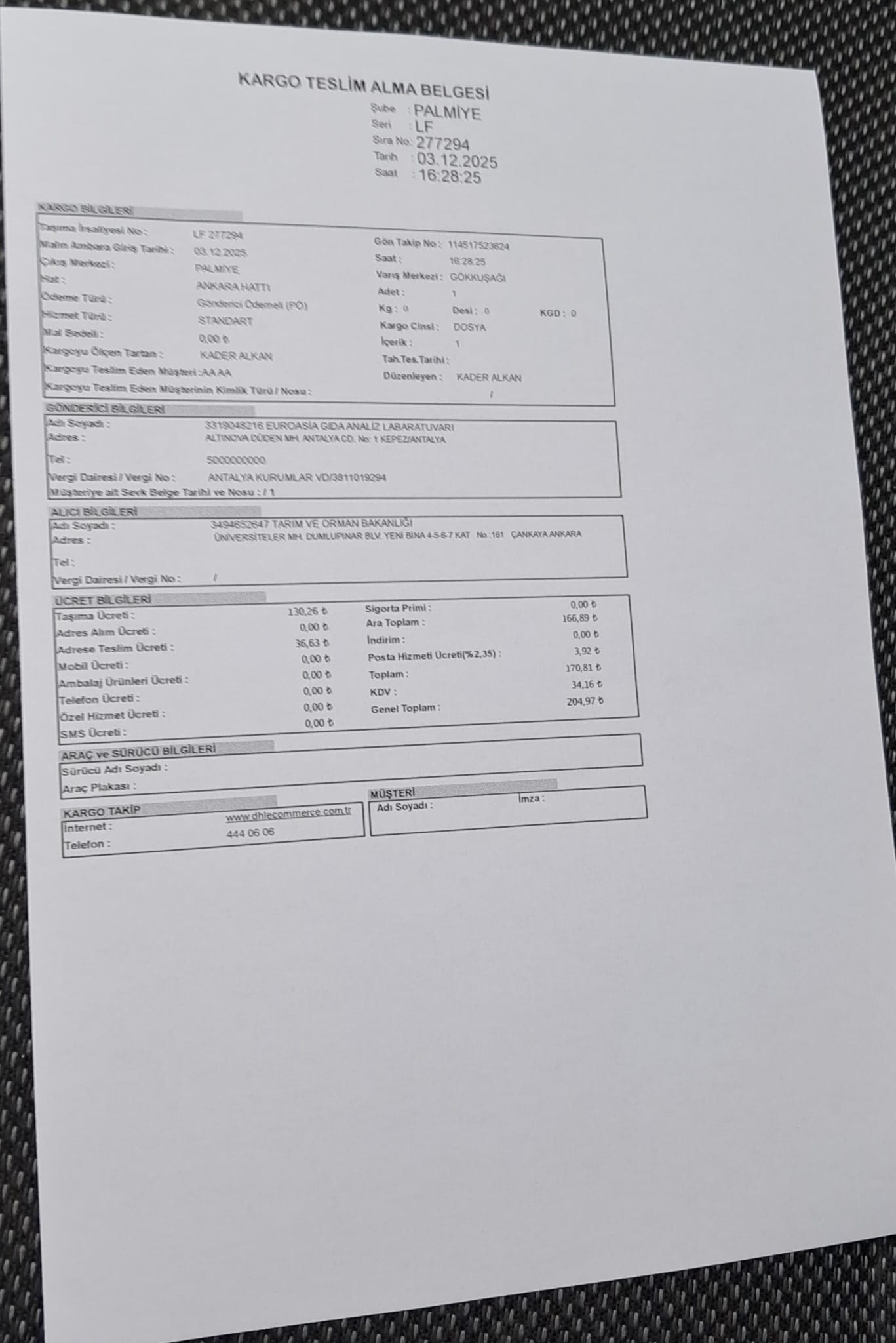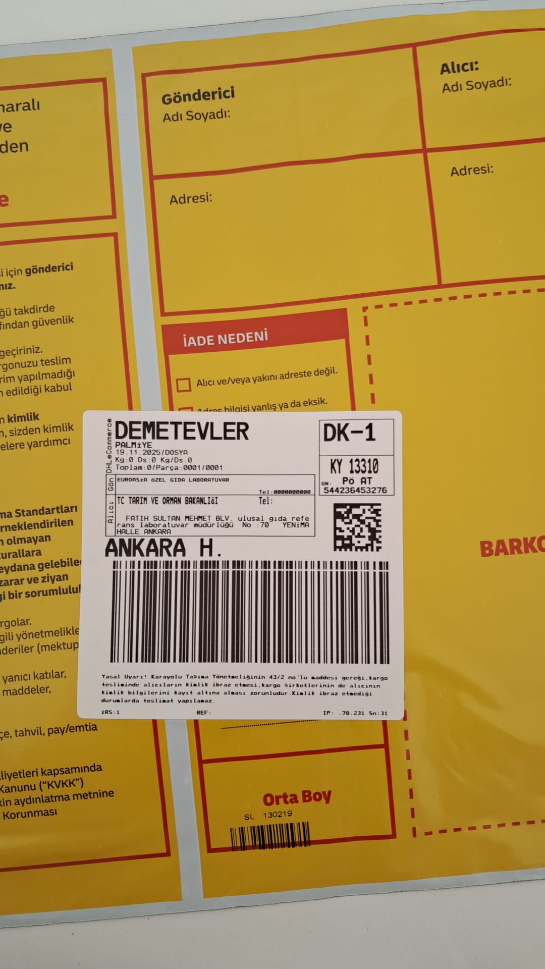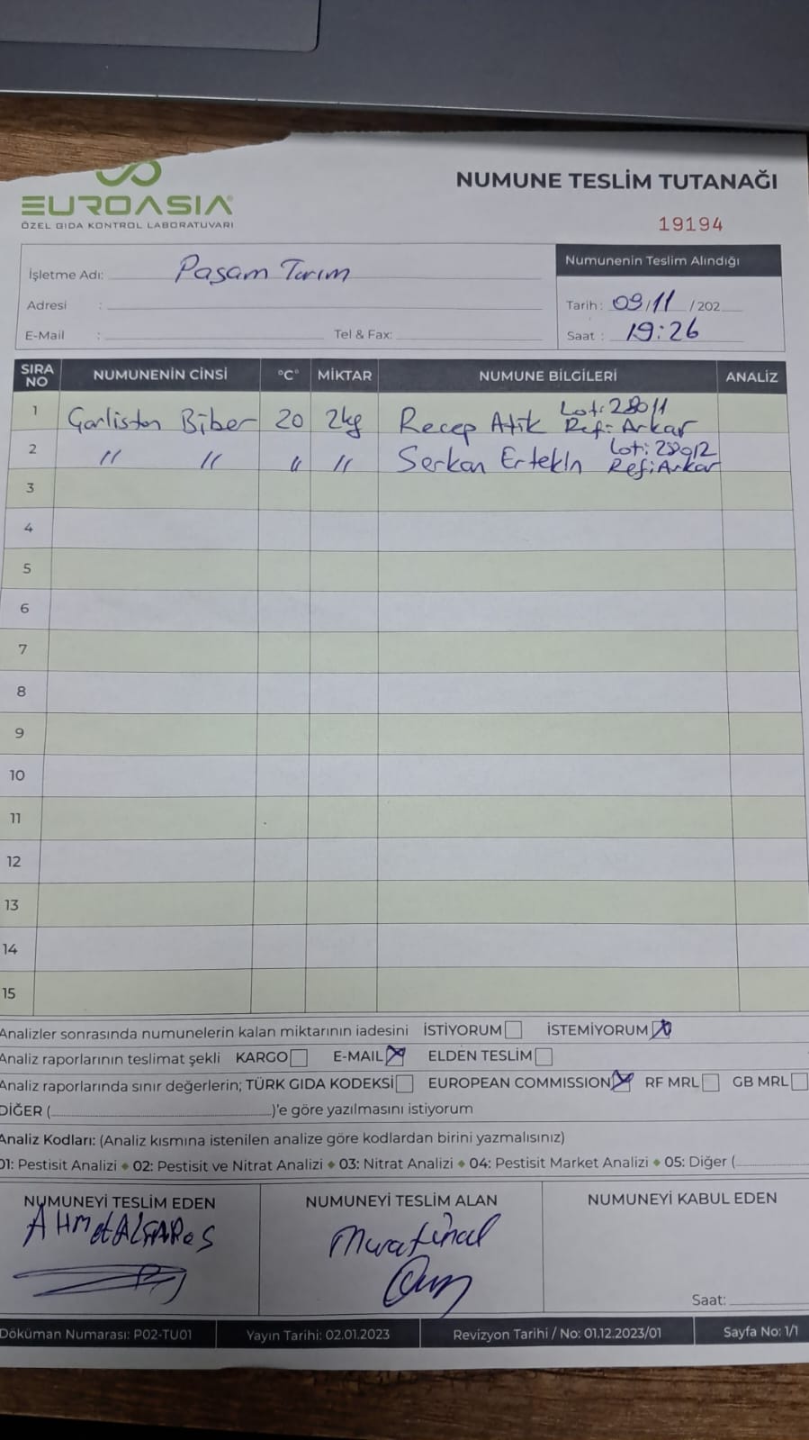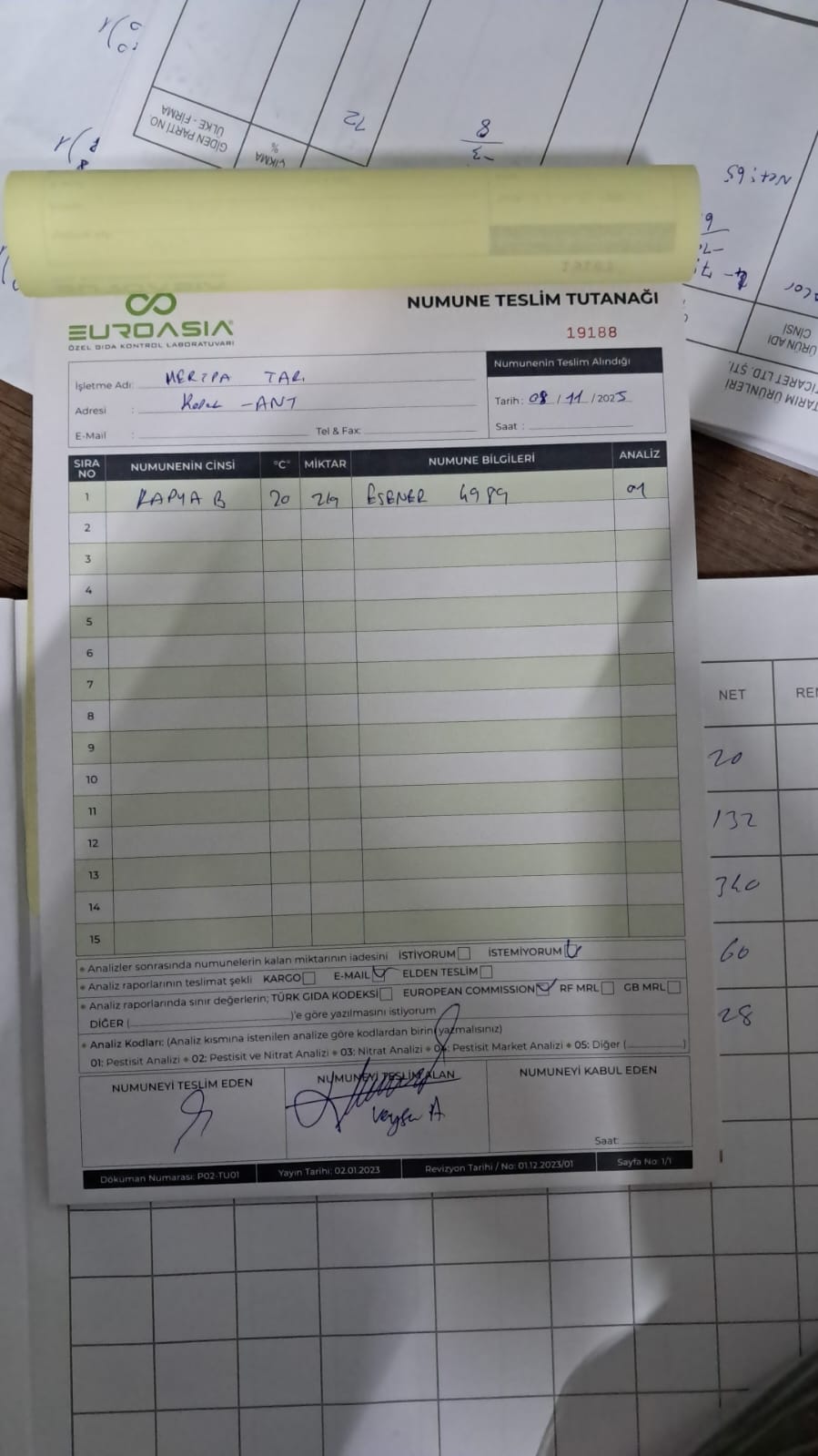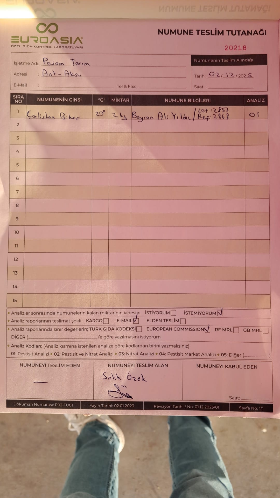 1 adet numune teslim alındı | 05.12.2025 21:52 | ||