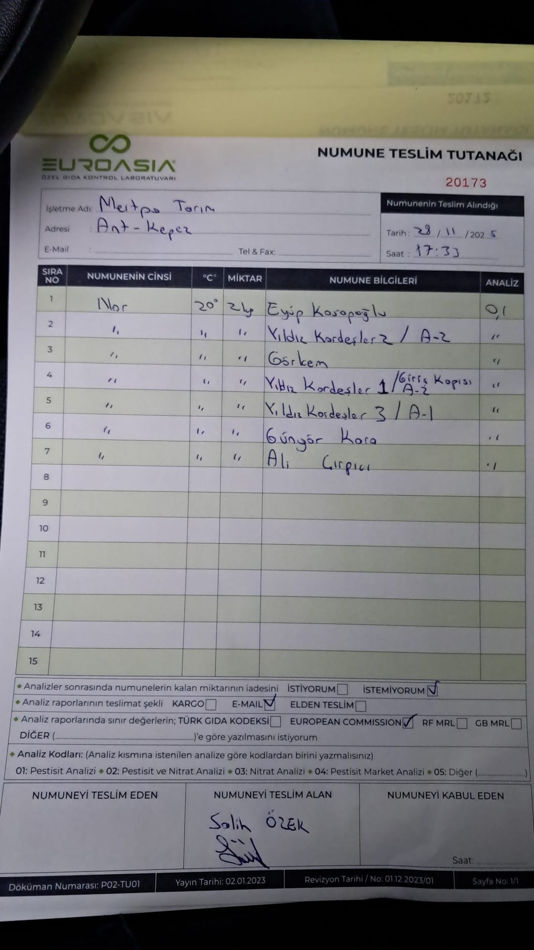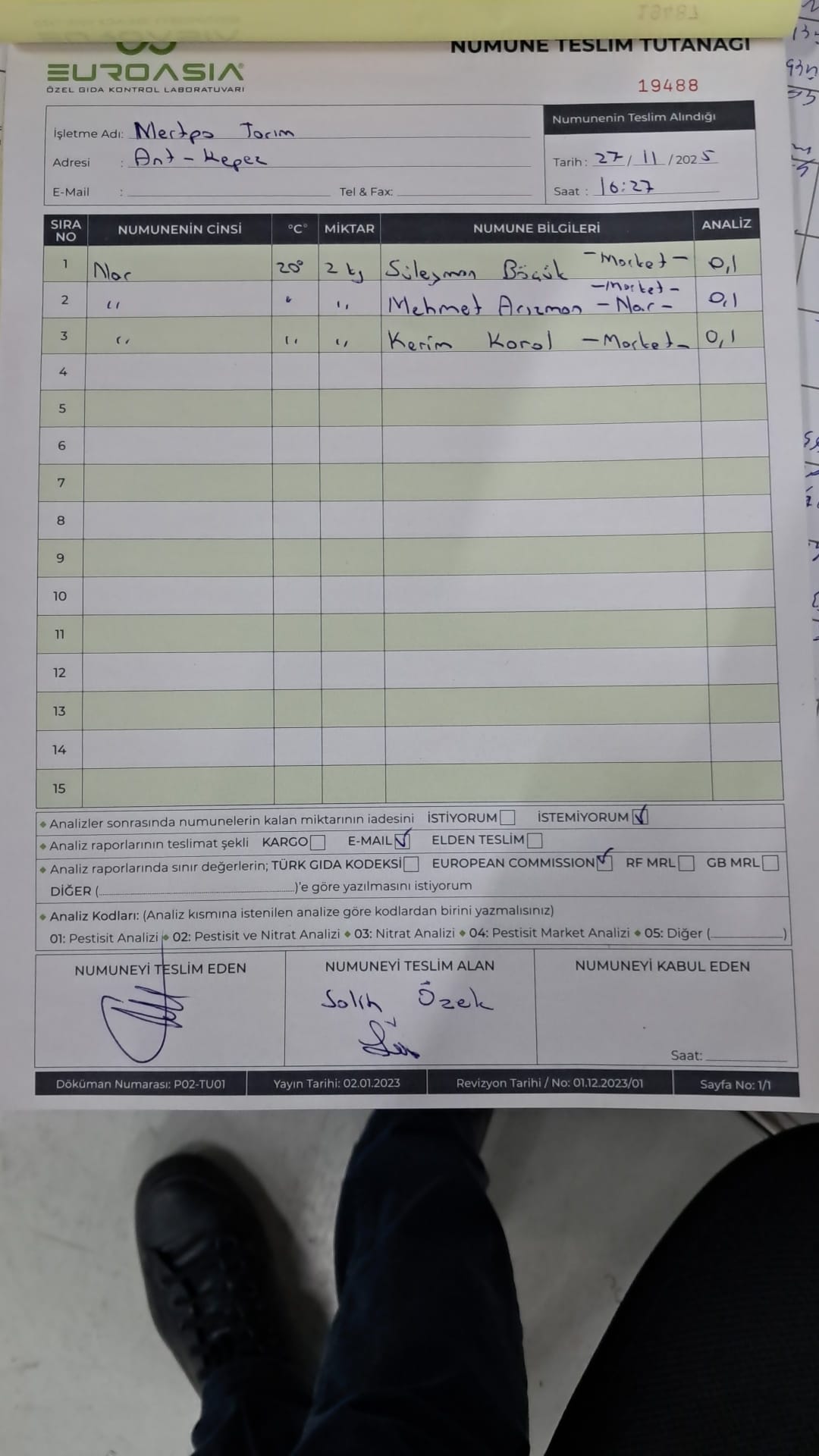 1 adet numune teslim alındı | 05.12.2025 21:55 | ||