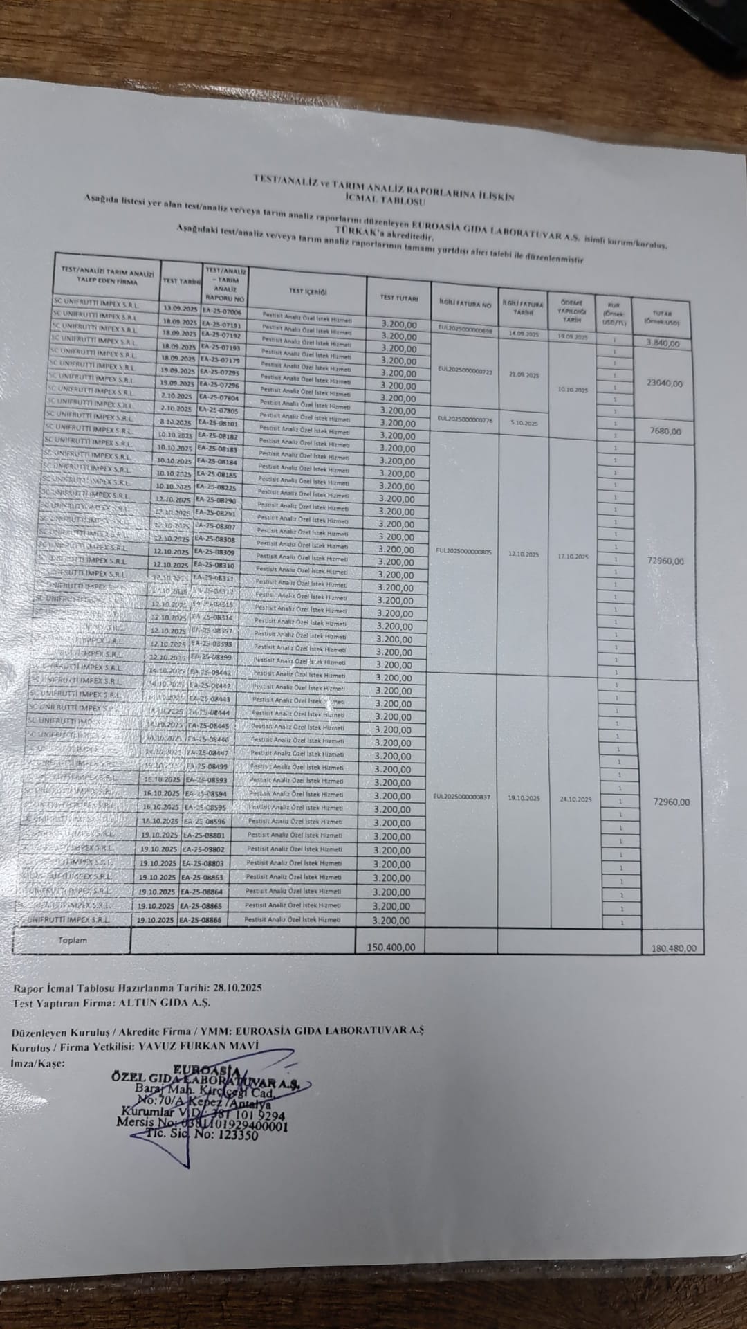 | Kurtoğlu & EUROASİA LAB. | Tufan Raporlama 905396149881 |