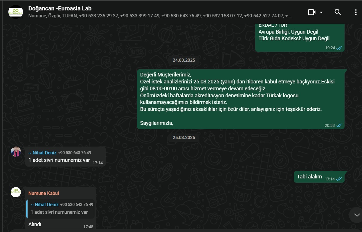 sahit numunesinde ayni madde gelmistir seyreltmesi vardir onun sonucunu beklemekteyiz | 05.11.2025 15:24 | ||