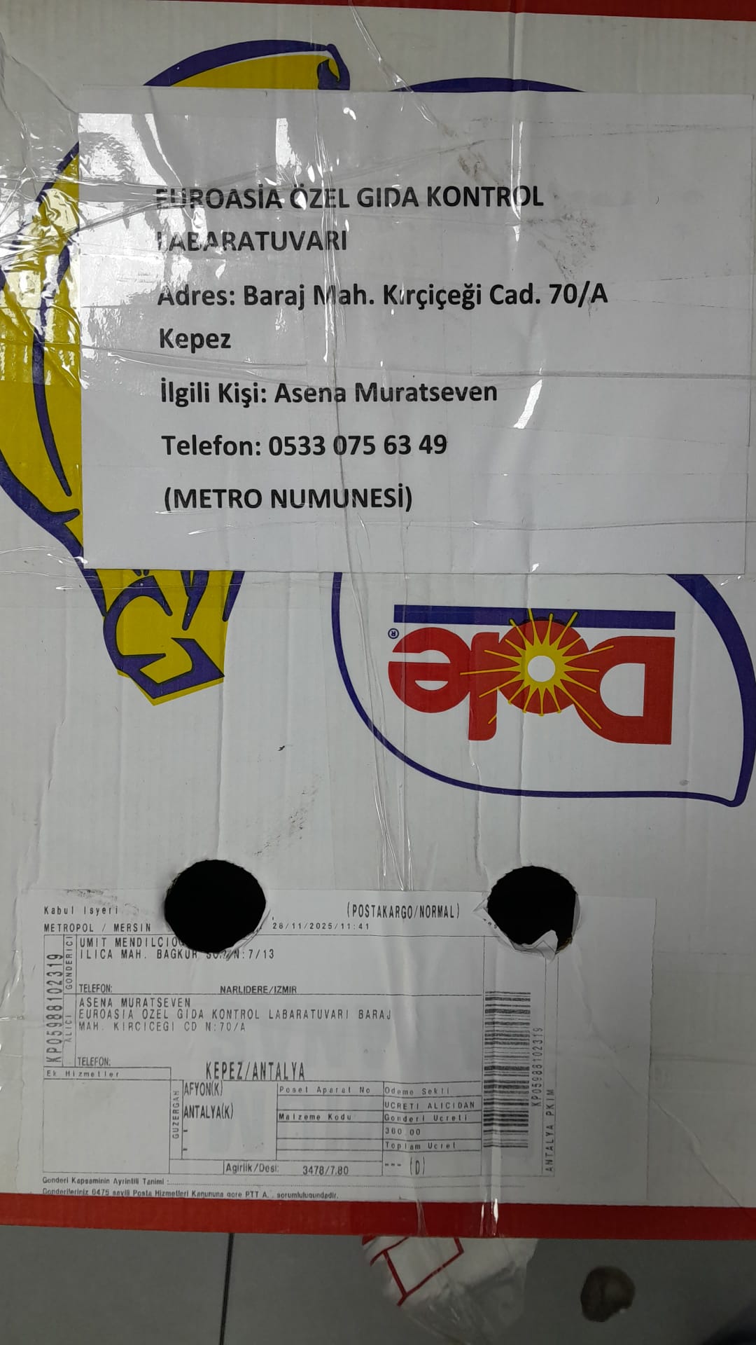 Kapıdan 1 adet numune teslim alındı | 05.11.2025 15:49 | ||