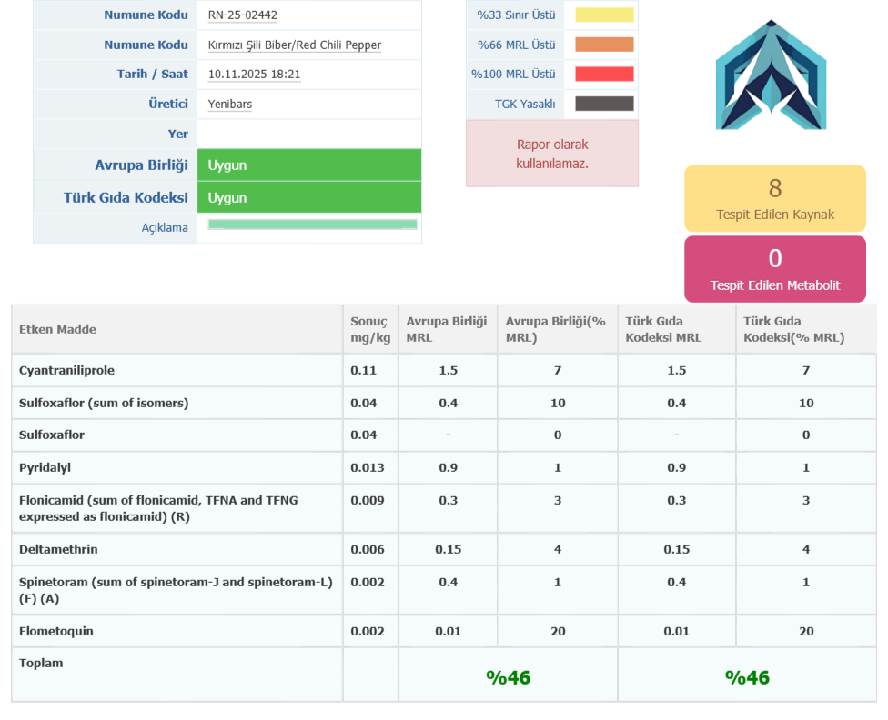 SULFOXAFLOR mrl ustu gelmistir dogrulanma asamasindadir | 05.11.2025 13:04 | ||