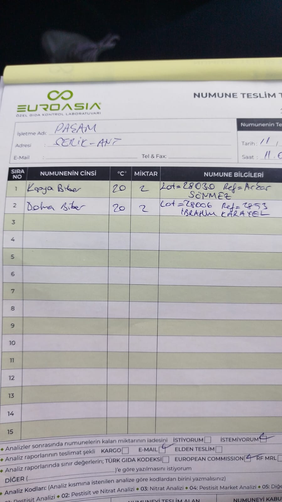 2 adet Asya Fresh adına narn numunesi alındı Asya Fresh adına kayıt yapılacaktır fatura edilecektir bilginiz olsun | 05.11.2025 15:17 | ||