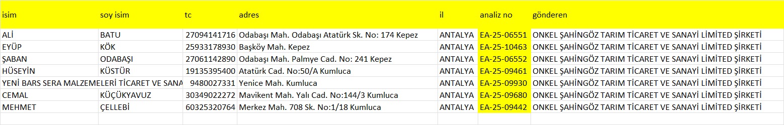 Dün gazipasadan çıkan ürünlerin analiz sonuçlarıni bekliyoruz. | 05.11.2025 15:11 | ||