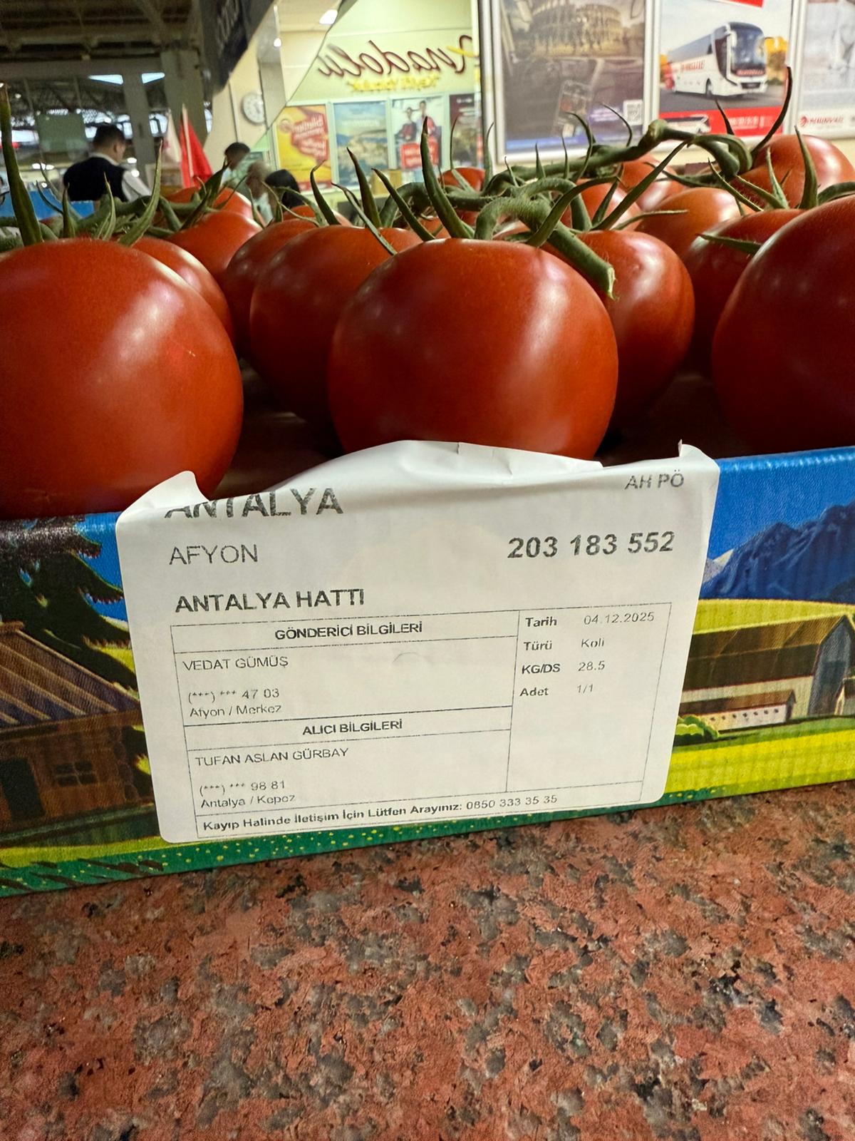 Merhaba 1 kutu domates gönderdik 19.30 da kırşehirden çıkış sağlayacak. Kaptanın numarası ve plakayı gönderdim iyi akşamlar | 05.12.2025 20:49 | ||